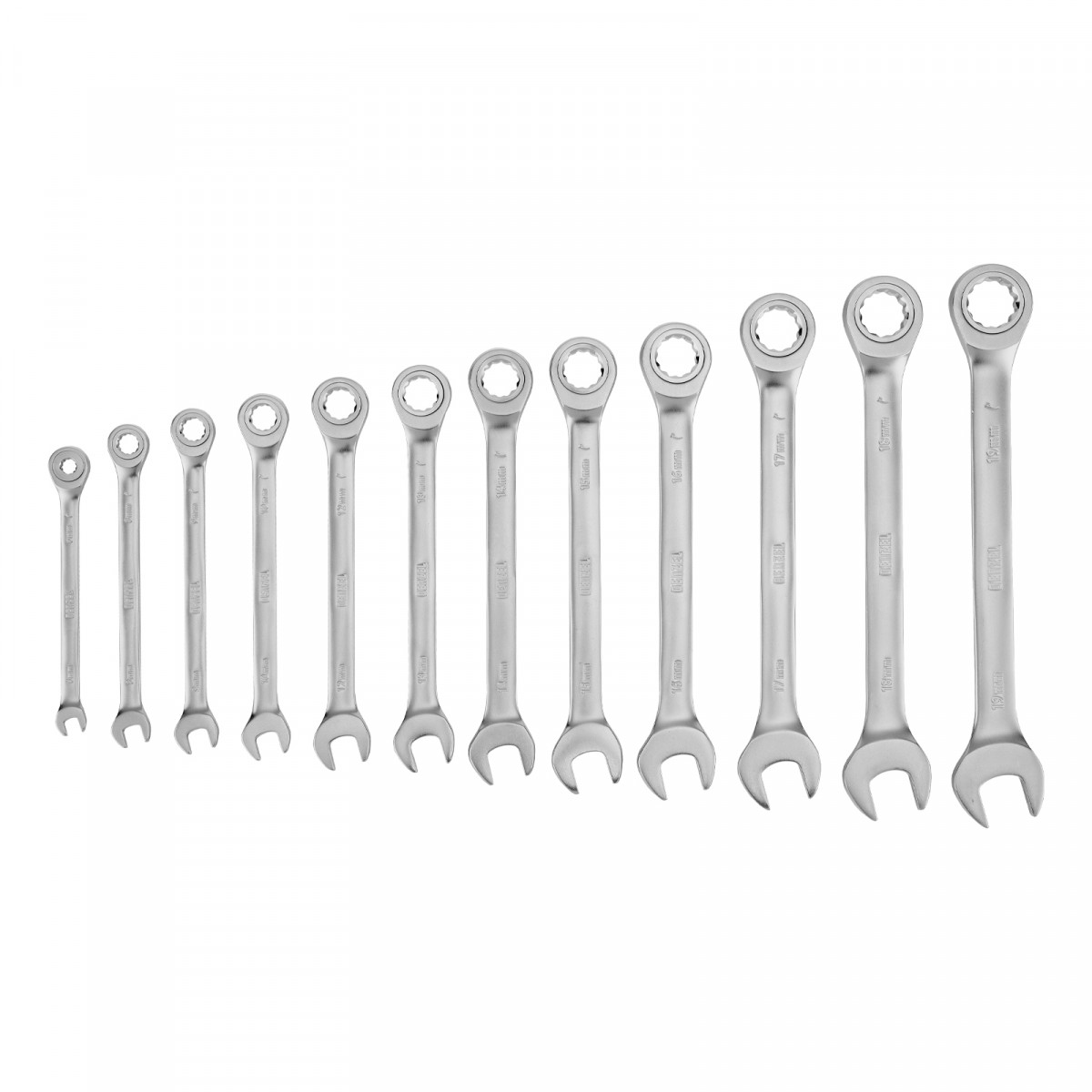 Набор ключей комбинированных трещоточных 6-19 мм, 12 шт., CrV, матовый хром Denzel
