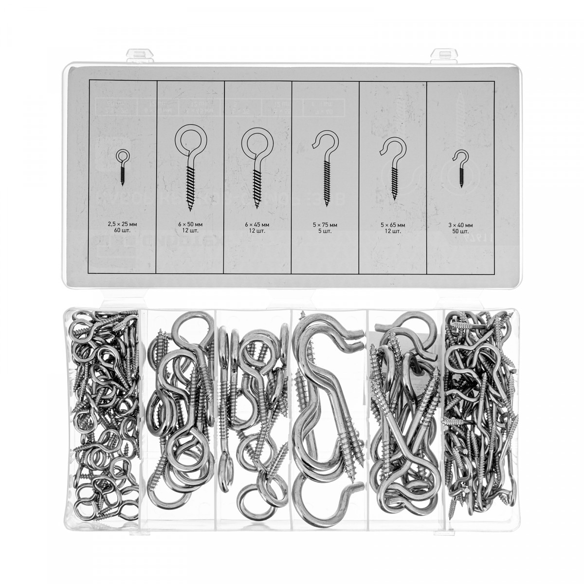 Набор крюков-саморезов 2.5 х 25, 3 х 40.5 х 65.5 х 75, 6 х 45, 6 х 50 мм, 151 предмет Сибртех