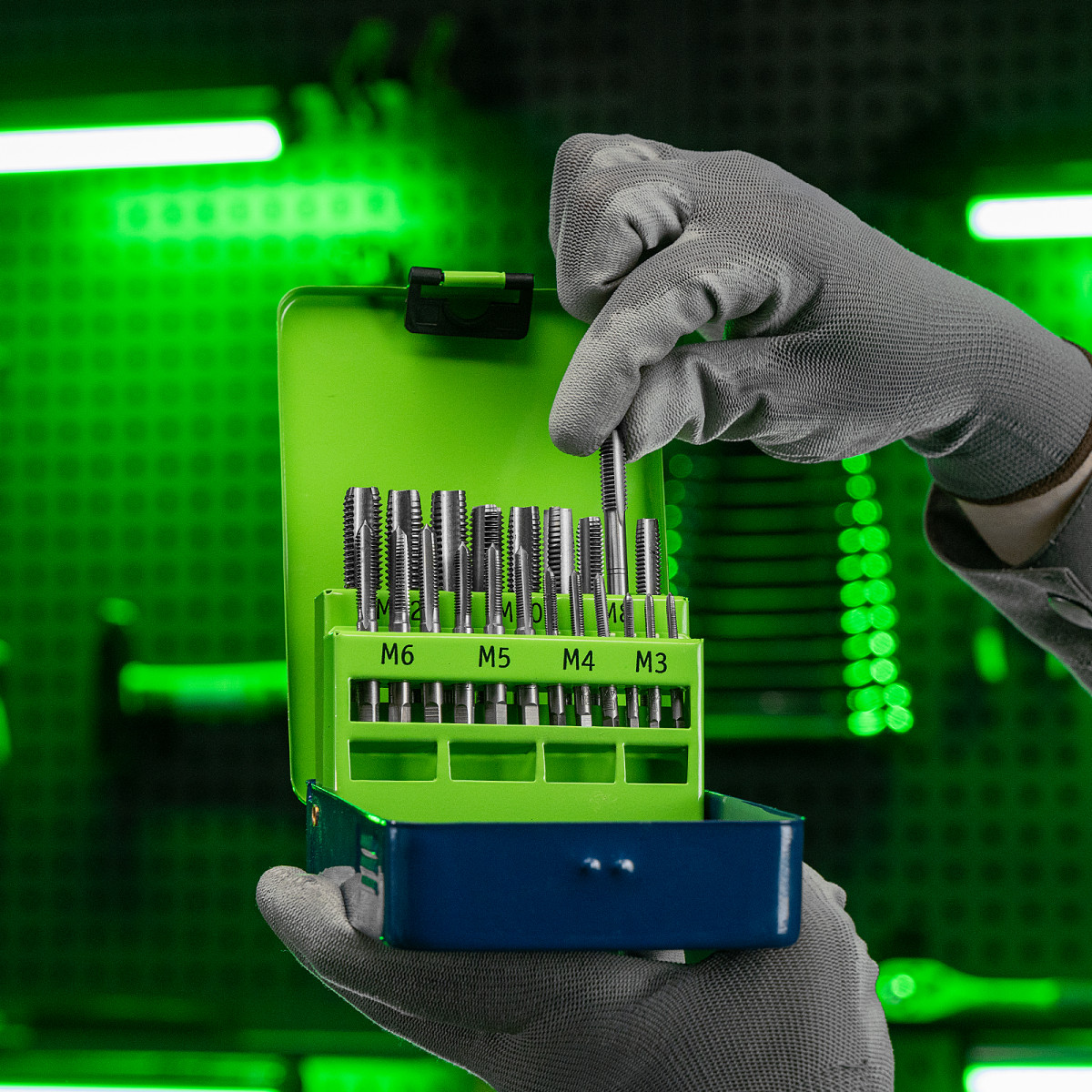 - Высокое качество резьбы — в набор входит по 3 метчика каждого размера: №1 для первичного прохода, №2 для повышения точности витков и №3 для финишной доводки.