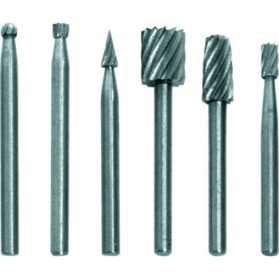 Шарошки-мини по металлу,  6 шт. используются для обработки изделий из металла с помощью прямошлифовальной машины. Предназначены для доводки и обработки фигурных отверстий. В набор входят насадки, предоставляющие возможность обработки поверхностей различного профиля. Изготовлены из усиленной инструментальной стали .
