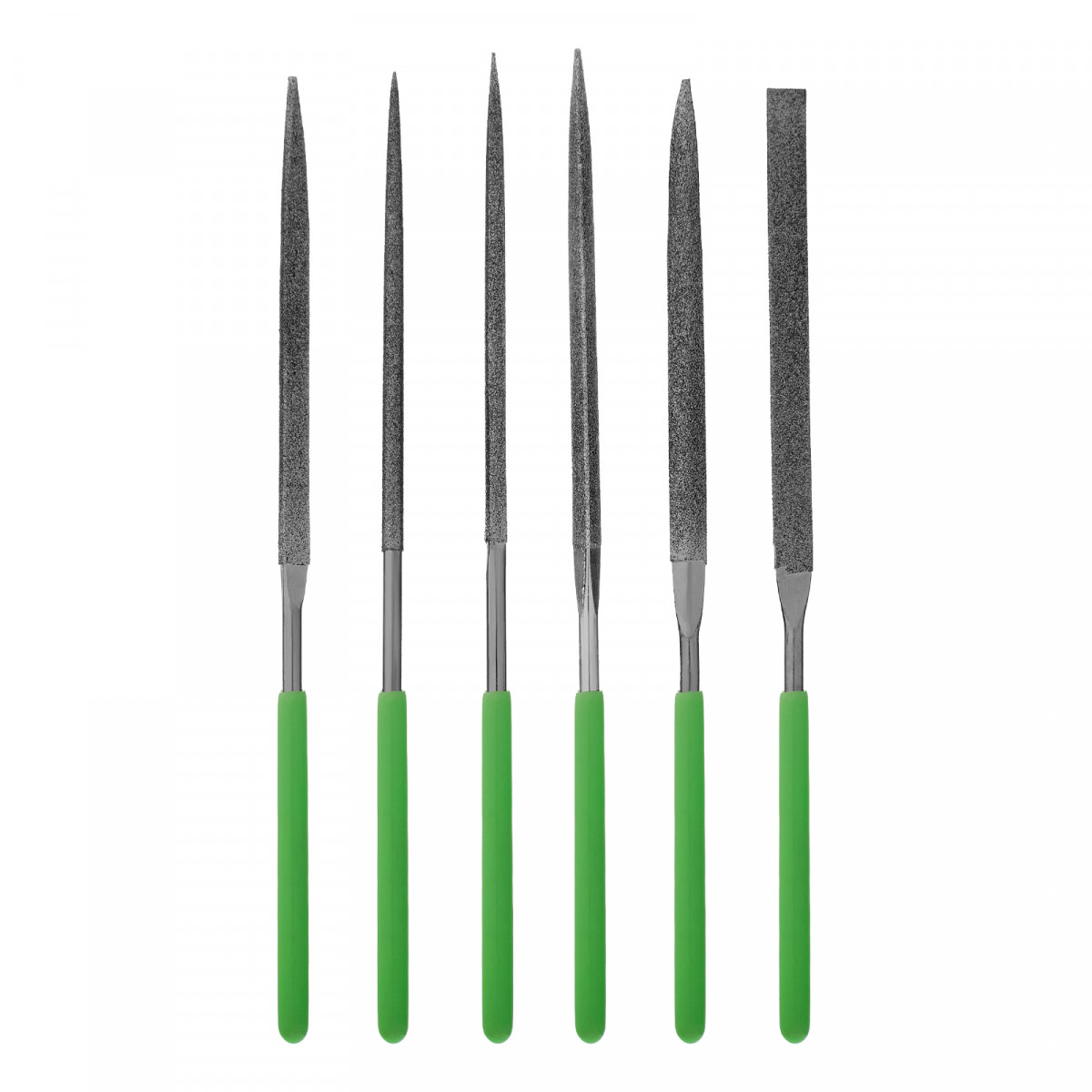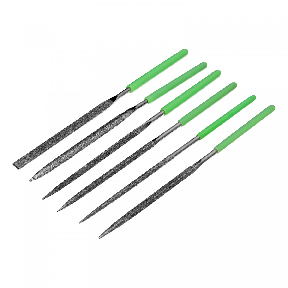 Плоский тупоносый надфиль - 1 штКруглый надфиль - 1 штТрехгранный надфиль - 1 штПолукруглый надфиль - 1 штКвадратный надфиль - 1 штПлоский остроконечный надфиль - 1 шт