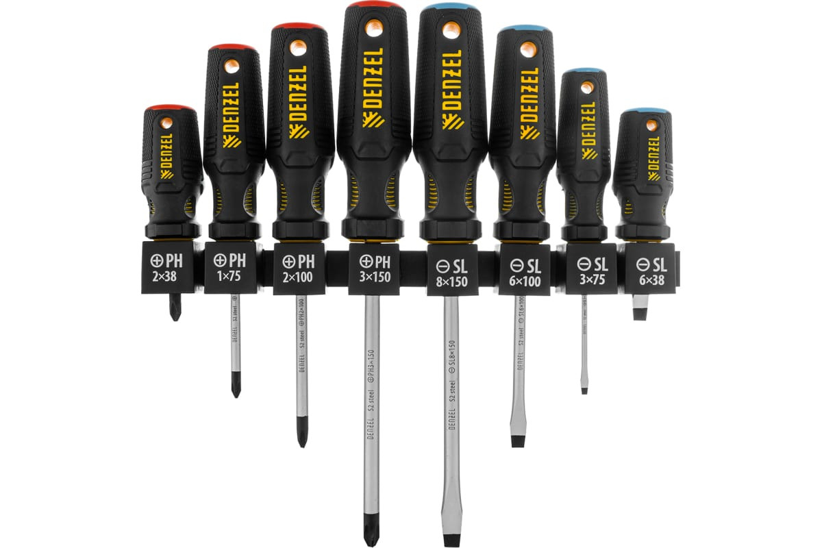Набор отверток на полке,8 шт PH+SL S2 3к рукоятка DENZEL
