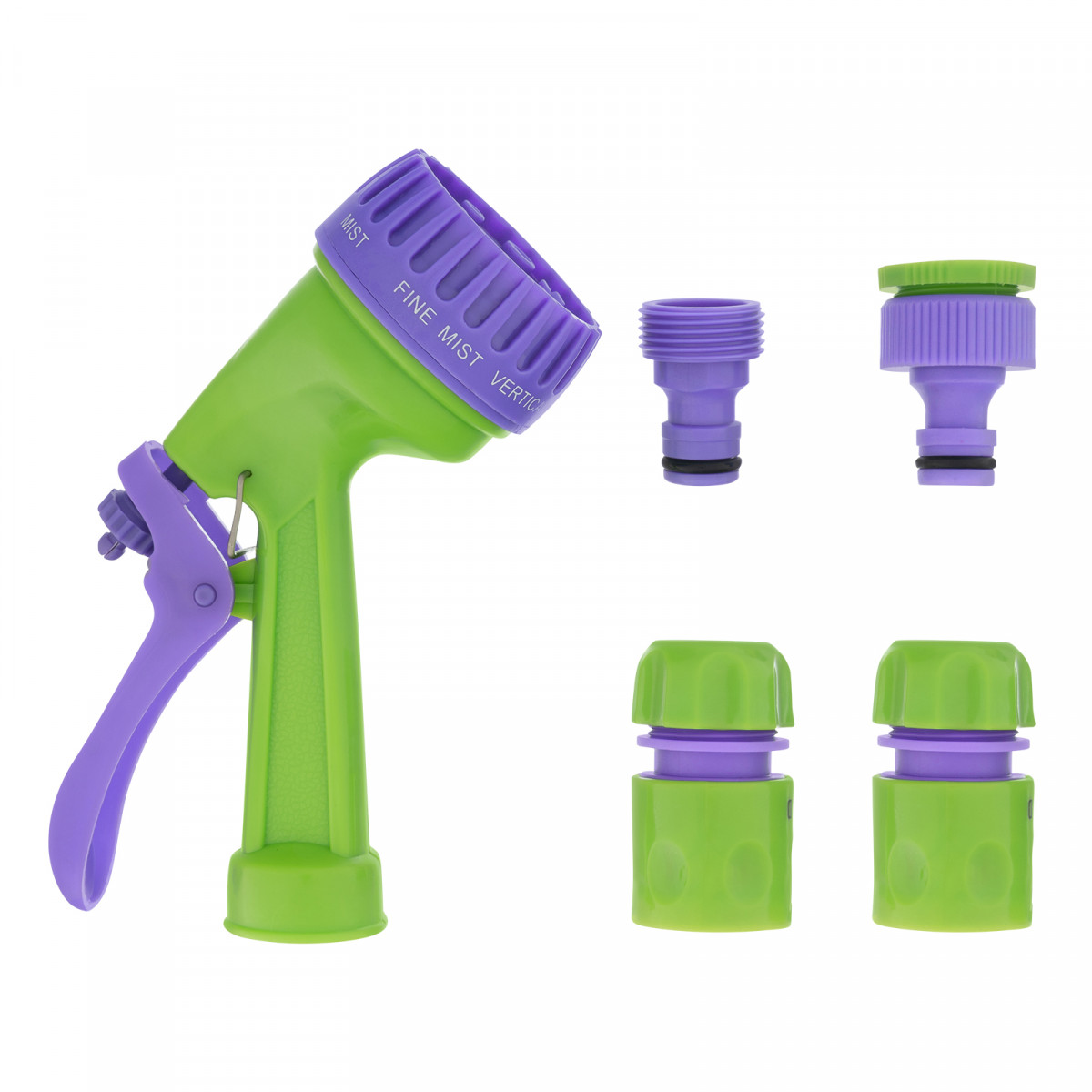 - Выбор оптимального режима полива — пистолет-распылитель позволяет регулировать мощность и тип струи.