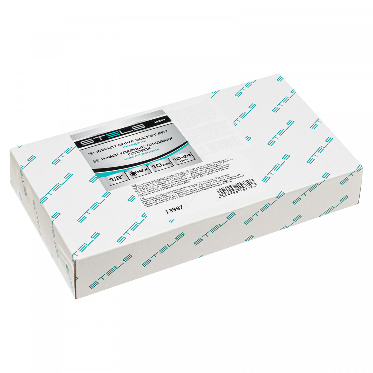 Набор шестигранных ударных торцевых головок, 1/2, 10-24 мм, 10 шт, Stels