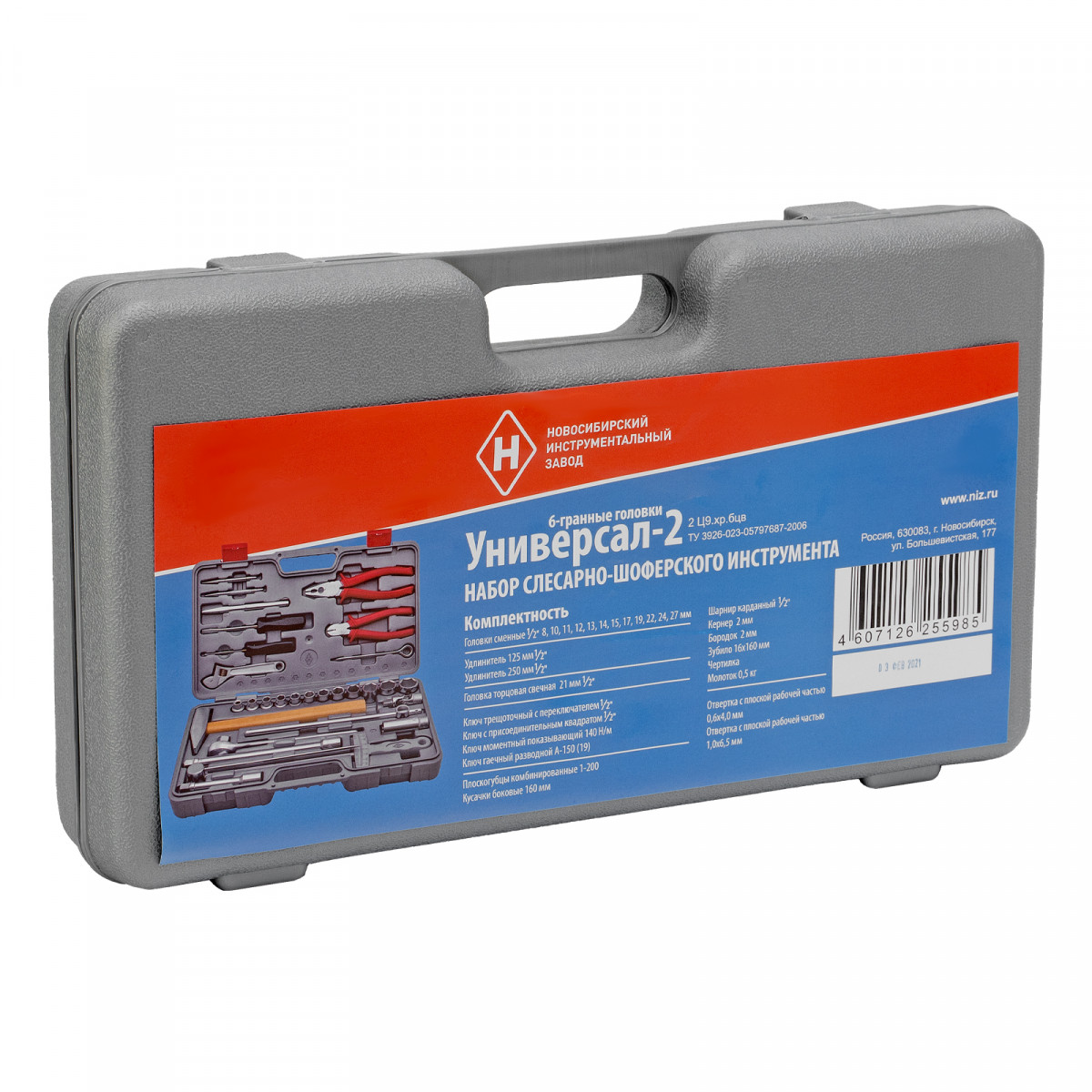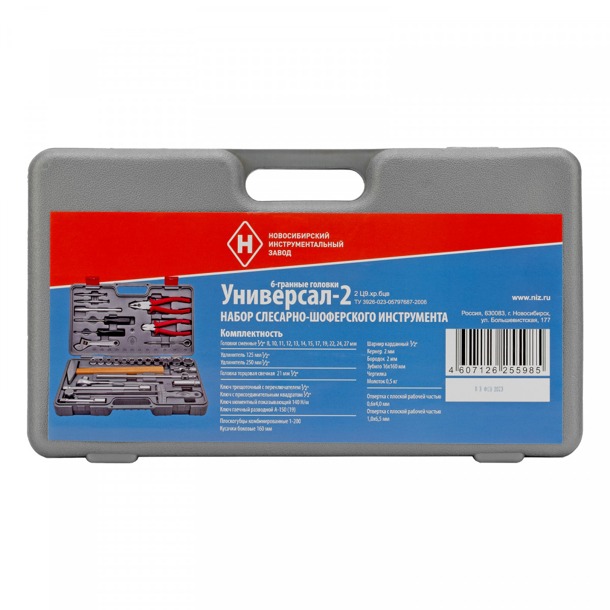 Набор НИЗ «Универсал-2» 13447 в пластиковом боксе включает широкий ассортимент слесарно-шоферских инструментов. С его помощью можно заменить свечи зажигания, осуществить монтаж/демонтаж крепежа, в том числе и в труднодоступных местах, захватить мелкие детали, перекусить проволоку, забить гвозди и т.д.