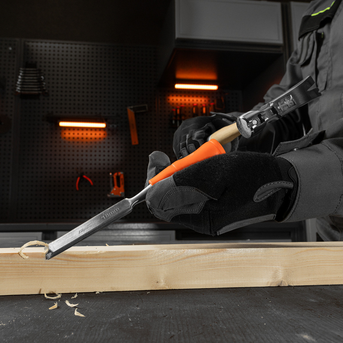 • Высокий ресурс — стамески закалены до твердости 58-63 HRC (2/3 длины рабочей части полотна) и долго сохраняют режущую способность.