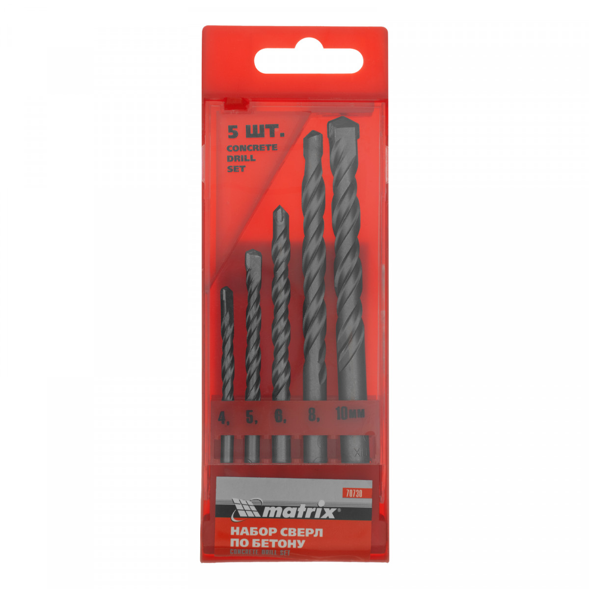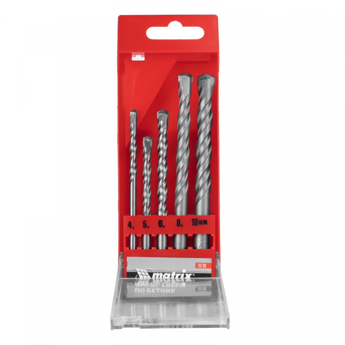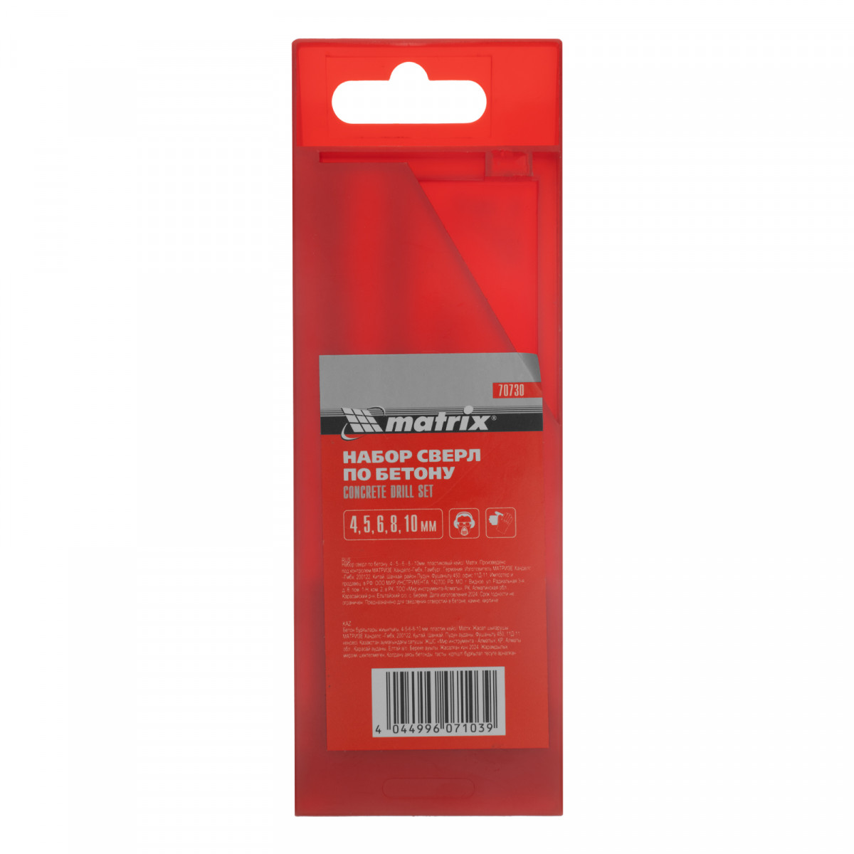 Набор сверл по бетону, 4-5-6-8-10 мм, пластиковый кейс, Matrix