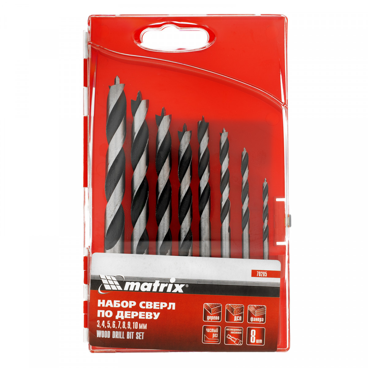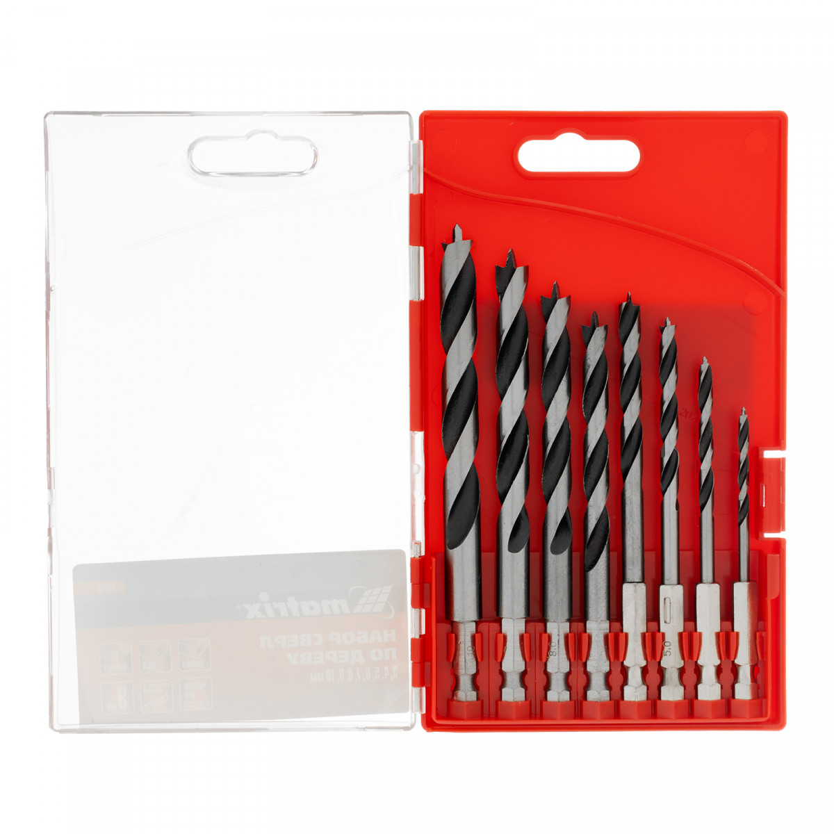 Набор сверл по дереву, 3-4-5-6-7-8-9-10 мм, 8 шт, шестигранный хвостовик, пластиковый кейс, Matrix