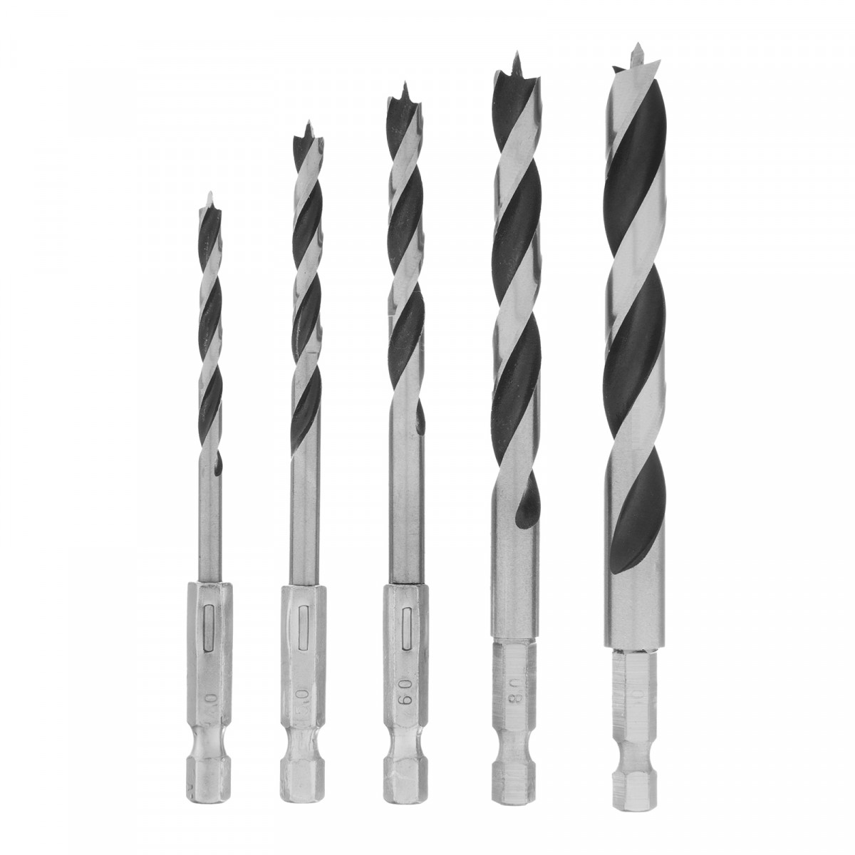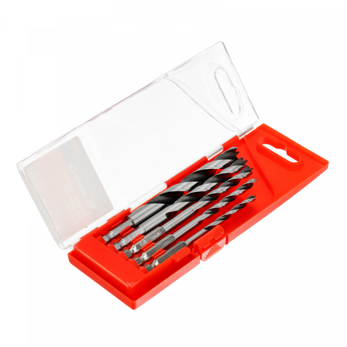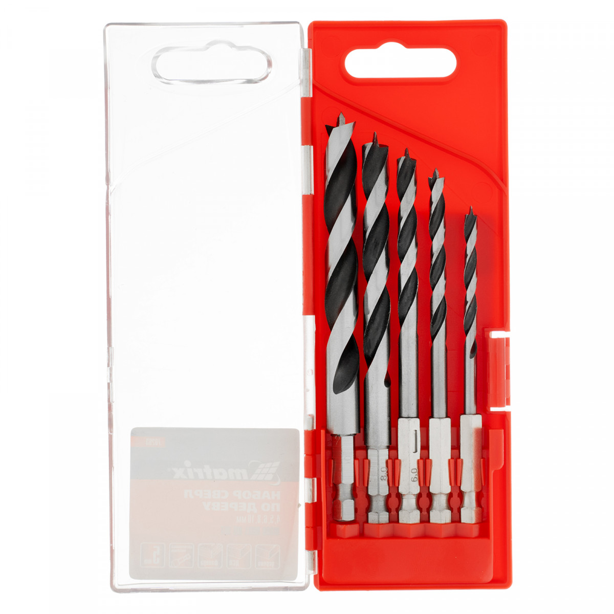 Набор сверл по дереву, 4-5-6-8-10 мм, 5 шт, шестигранный хвостовик, пластиковый кейс, Matrix