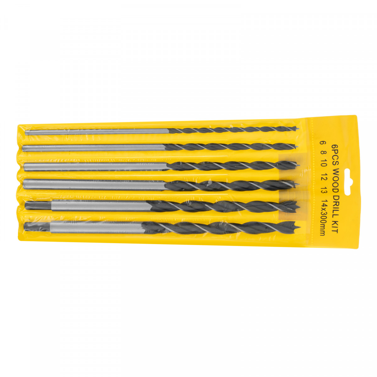 Набор сверл по дереву, 6-8-10-12-13-14 мм, L 300 мм, 6 шт, цилиндрический хвостовик Sparta