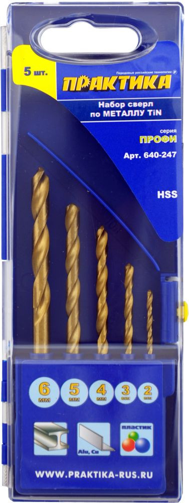 Набор сверл по металлу ПРАКТИКА "профи", нитрид титана, 5шт 2,3,4,5,6 мм, ПРО кассета
