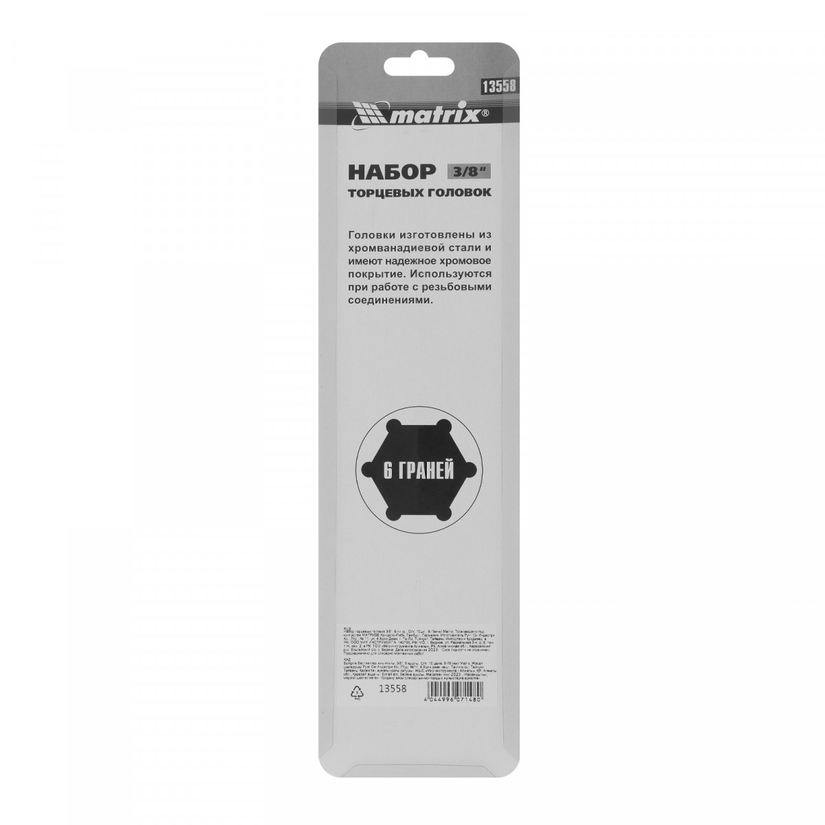 Набор торцевых головок 3/8", 6 гранные, CrV, 8-19мм, 10 штук Matrix
