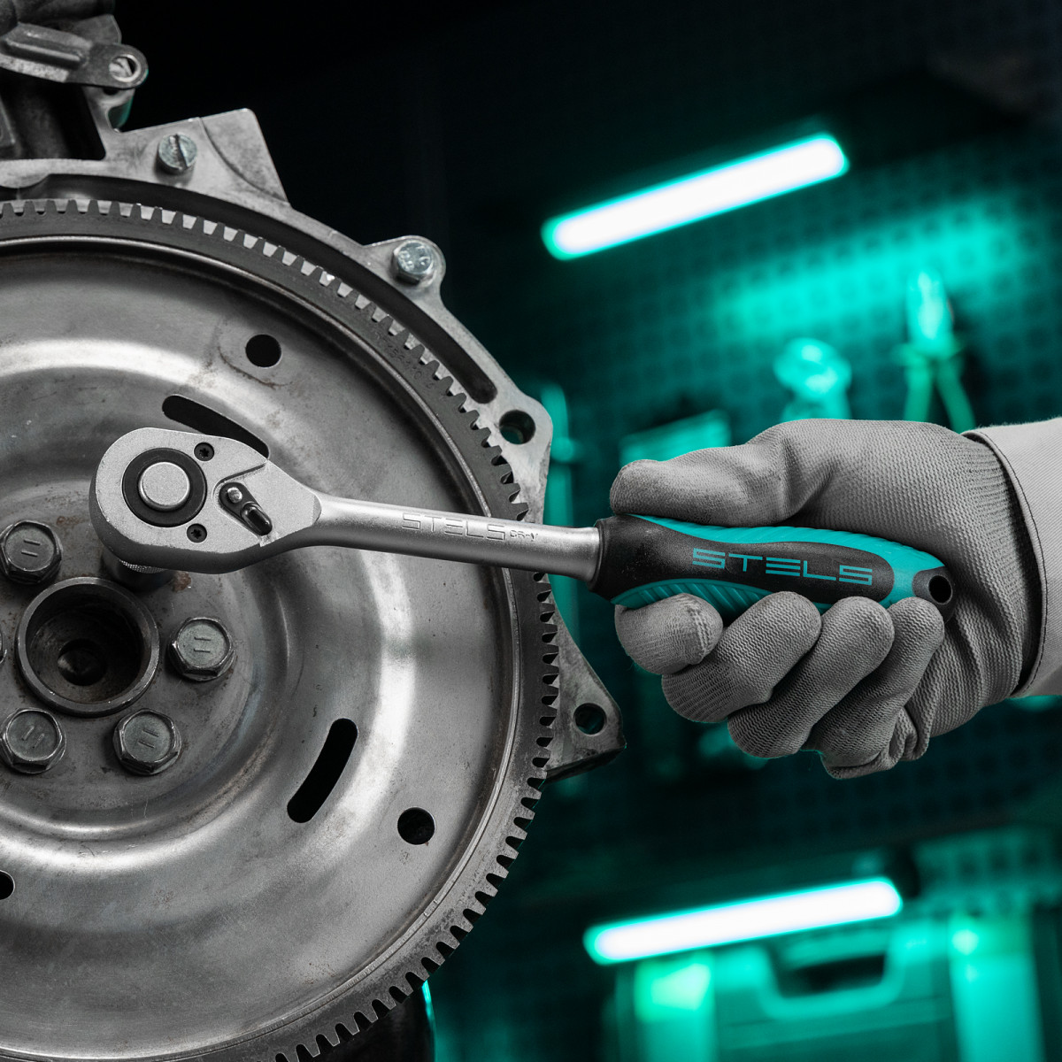 • Удобная работа в труднодоступных местах — трещотка с 72 зубьями позволяет вращать крепеж плавно и мягко.
