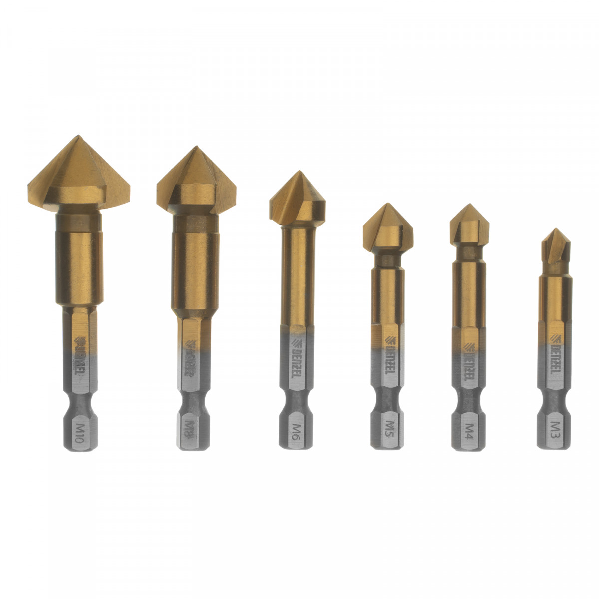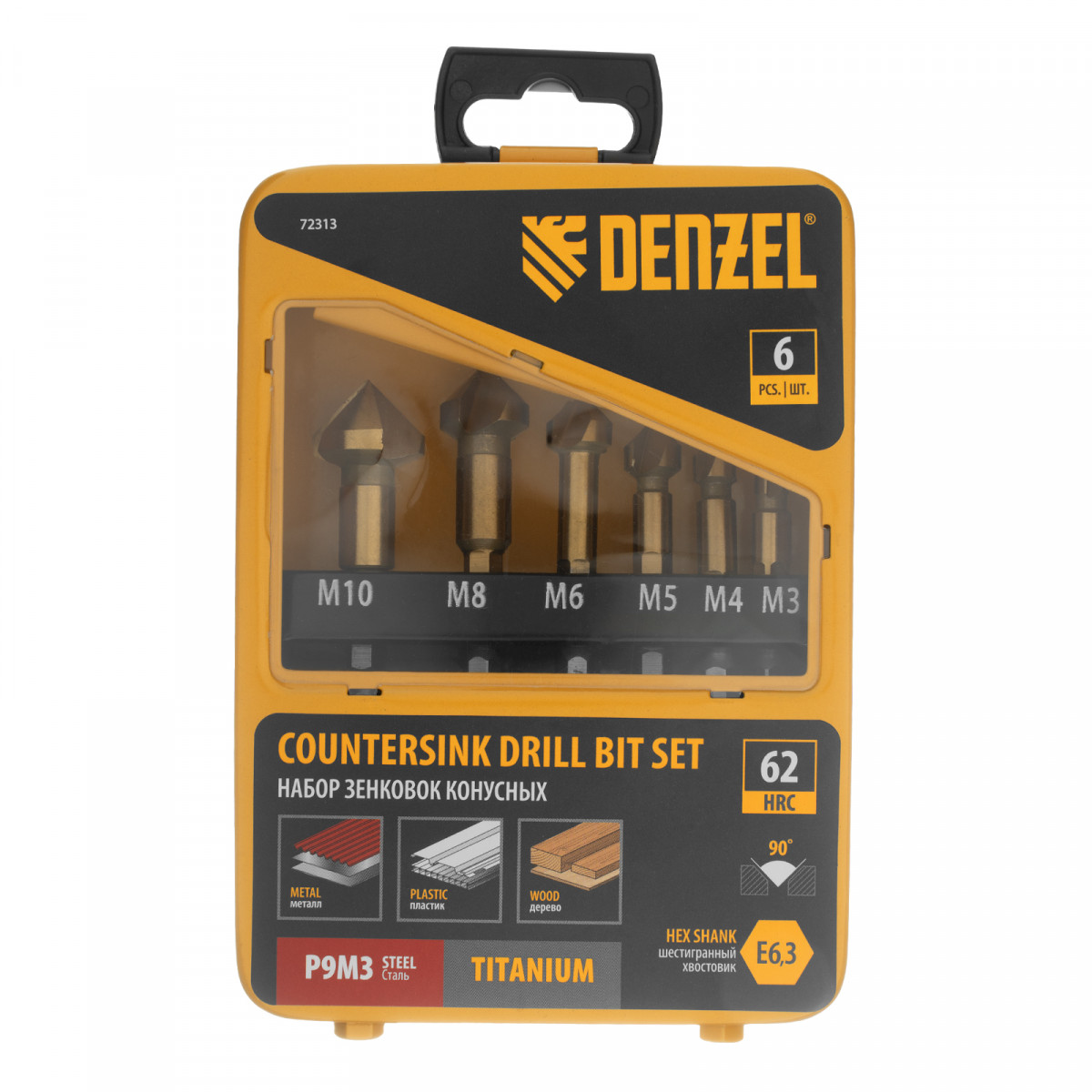Набор зенковок, HSS, M3-M10, 6 шт, металл. кейс // Denzel