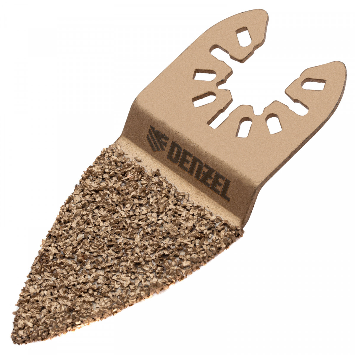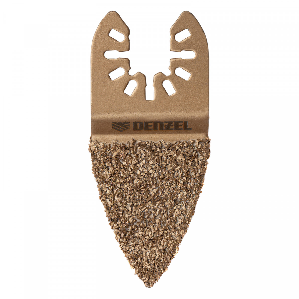 Шлифовальная дельтовидная насадка для МФИ Denzel 782321, 33 мм, из стали HM, пригодится при проведении шлифовальных работ по плитке, дереву, кирпичу и камню. С ее помощью можно подготовить поверхности к последующей отделке: удалить раствор и клей из плиточных швов, снять фаски и заусенцы и др. Насадка подходит для профессионального применения, т.к. рассчитана на интенсивные механические нагрузки за счет повышенного содержания марганца в составе стали.