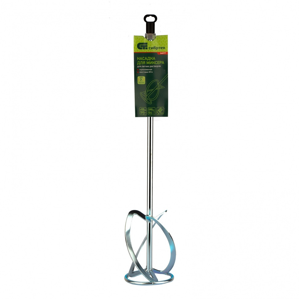 Оцинкованная насадка для миксера Сибртех 848977, 120 х 590 мм, с хвостовиком М14, — оснастка для специализированных перфораторов, предназначенная для приготовления лаков, красок, клеевых смесей и других легких жидких растворов. Перемешивает состав снизу вверх и по горизонтали, поэтому готовая масса имеет максимально однородную консистенцию. При ее использовании создается небольшая нагрузка на двигатель инструмента, что увеличивает срок его службы. Насадка используется во время отделочных работ.