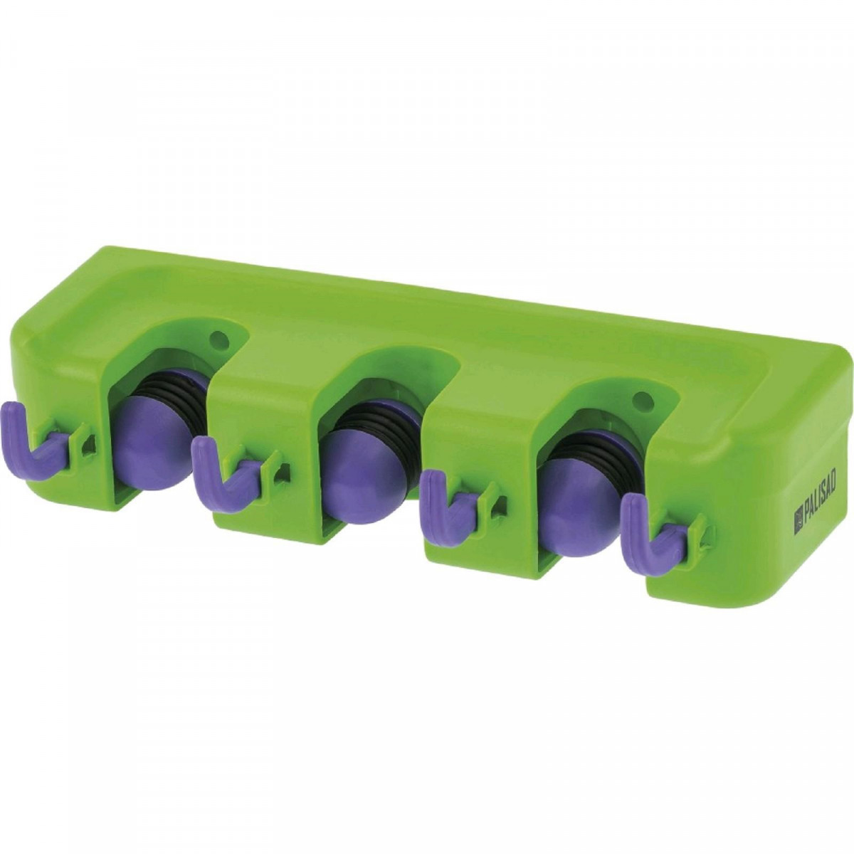 Настенные держатели обеспечат удобное и компактное хранение в доме или на даче. Они позволят разместить несколько предметов садового инструмента без потери рабочего пространства. Навесное хранение способствует удобству уборки подсобного помещения, а также исключает потерю или повреждение инвентаря. Конструкция приспособления позволяет размещать предметы любого типа: грабли, мотыги, мелкий садовый инструмент, хозяйственные мелочи. Крепление инструмента внутри ячейки осуществляется при помощи само зажимной силиконовой ленты. Дополнительные крючки позволят подвесить веревку, канат или другую бытовую мелочь. Монтаж к стене осуществляется при помощи дюбелей и саморезов.
