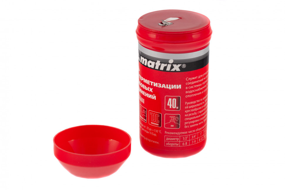 Универсальная нить Matrix 88887 длиной 40 м используется для уплотнения и герметизации резьбовых соединений. Подходит для металлических и пластиковых труб, используется для монтажа и ремонта систем отопления, газоснабжения, холодного и горячего водоснабжения. Оптимальна для труб, транспортирующих питьевую воду. Нить выдерживает давление газа до 8 бар и давление воды до 16 бар.