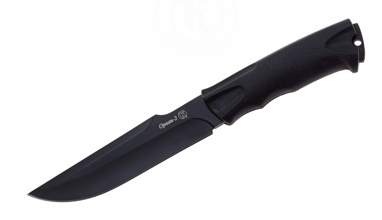 Нож «Орлан 2», выпускаемый предприятием «Кизляр» может пригодиться как охотникам и туристам, так и военнослужащим для выполнения хозяйственно-бытовых работ в полевых условиях. Нож не относится к гражданскому холодному оружию и прошел сертификацию как разделочный. Возможно также применение этого ножа для защиты от агрессивных диких животных или человека. Длина ножа «Орлан» составляет 275 мм, а размеры однолезвийного клинка – 145х35х4,2 мм. Клинок имеет форму, близкую к копьеобразной, основное лезвие образуется длинными вогнутыми спусками, а голомени клинка имеют усиливающие ребра жесткости. В корневой части клинка со стороны обуха сделан упор для большого пальца, позволяющий более удобно использовать нож при резке. Кроме этого, функции крестовины, предохраняющей руку при колющих ударах выполняет специальный выступ на рукояти со стороны лезвия. Клинок «Орлана» изготавливается из стали AUS8. Твердость достигает 57-59 HRC, а на клинок наносится темное антибликовое покрытие. Рукоять изготавливается из резинопластика Elastron G, который напрессовывается на проходящий по всей длине рукоятки хвостовик клинка. Комплектуется нож «Орлан» поясными кожаными ножнами.