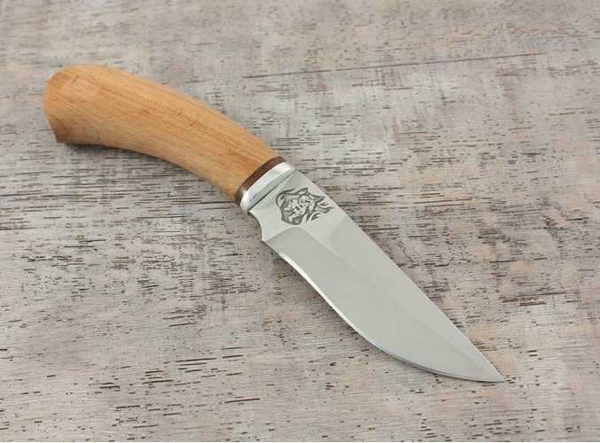 Этот нож поможет охотнику как в разделке пойманного зверя, так и в множестве бытовых работ, таких как обустройство лагеря и приготовление пищи. Нож способен качественно резать и прокалывать острием, этому способствует классическая форма клинка с прямым обухом и наличие фальшлезвия. Гарду в этой модели заменяет небольшой упор в основании клинка, защищающий руку от соскальзывания на лезвие. Хорошие прочностные характеристики ножа говорят о его готовности к выполнению экстремальных задач.