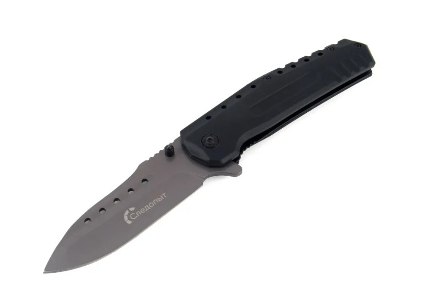 Нож складной туристический «Следопыт – PF-PK-11» – надежный спутник в походе, на охоте или рыбалке. Имеет прочный стальной клинок длиной 95 мм. Лезвие не подвержено коррозии, не ржавеет, легко точится и хорошо держит заточку. Эргономичная и стильная рукоять цвета металлик обеспечивает удобное удержание ножа. Модель оснащена клипсой и петлей для притягивания к ремню, а также стопором, предотвращающим произвольное складывание ножа. В комплекте идет матерчатый чехол для хранения и транспортировки. ХАРАКТЕРИСТИКИ: