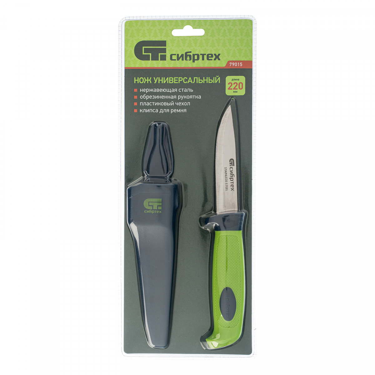 Нож универсальный с чехлом, обрезиненная рукоятка, 220 мм, лезвие 100 мм Сибртех