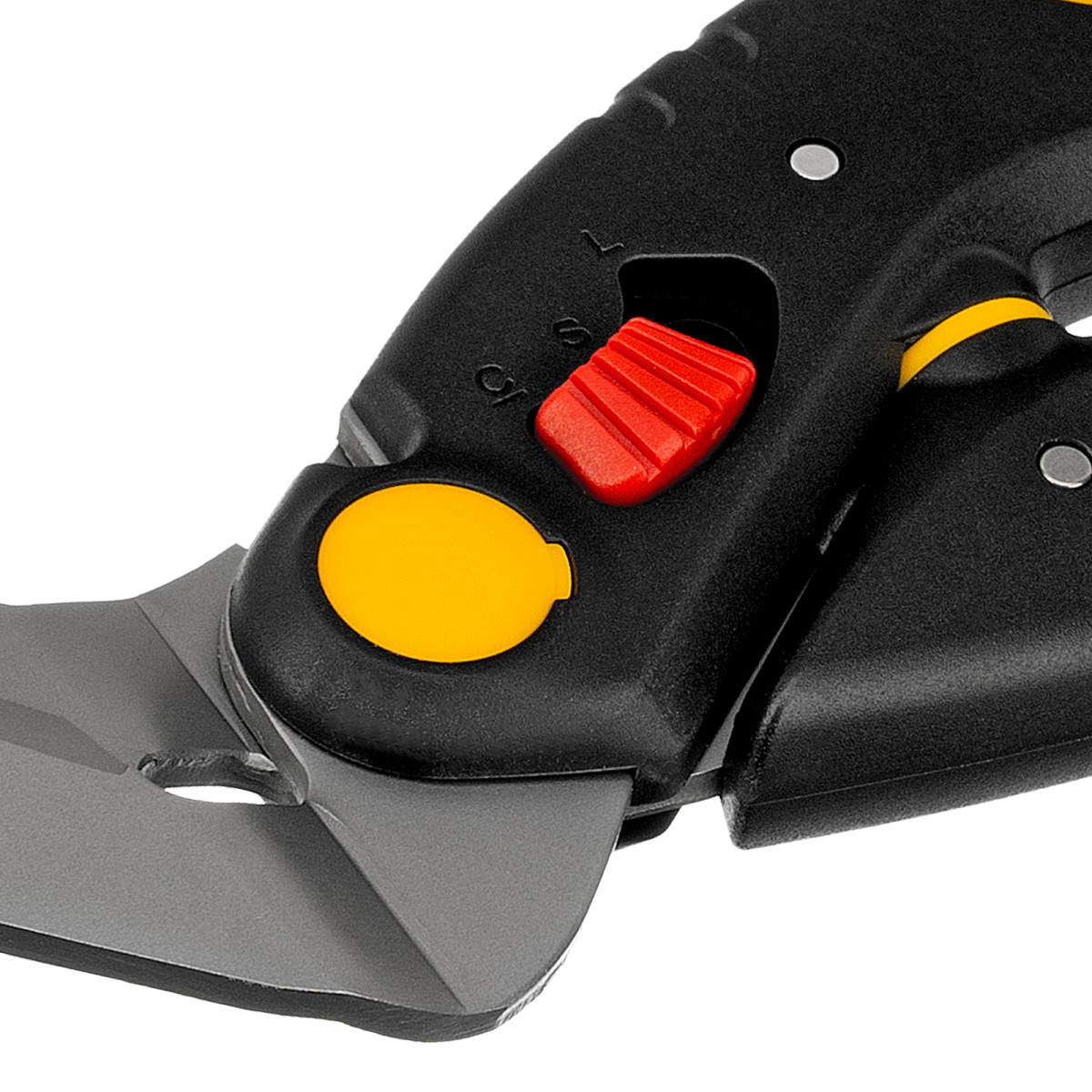 • Регулировка степени раскрытия лезвий — переключатель «большая-малая ладонь» позволяет настроить инструмент в соответствии с толщиной материала и размером руки пользователя.