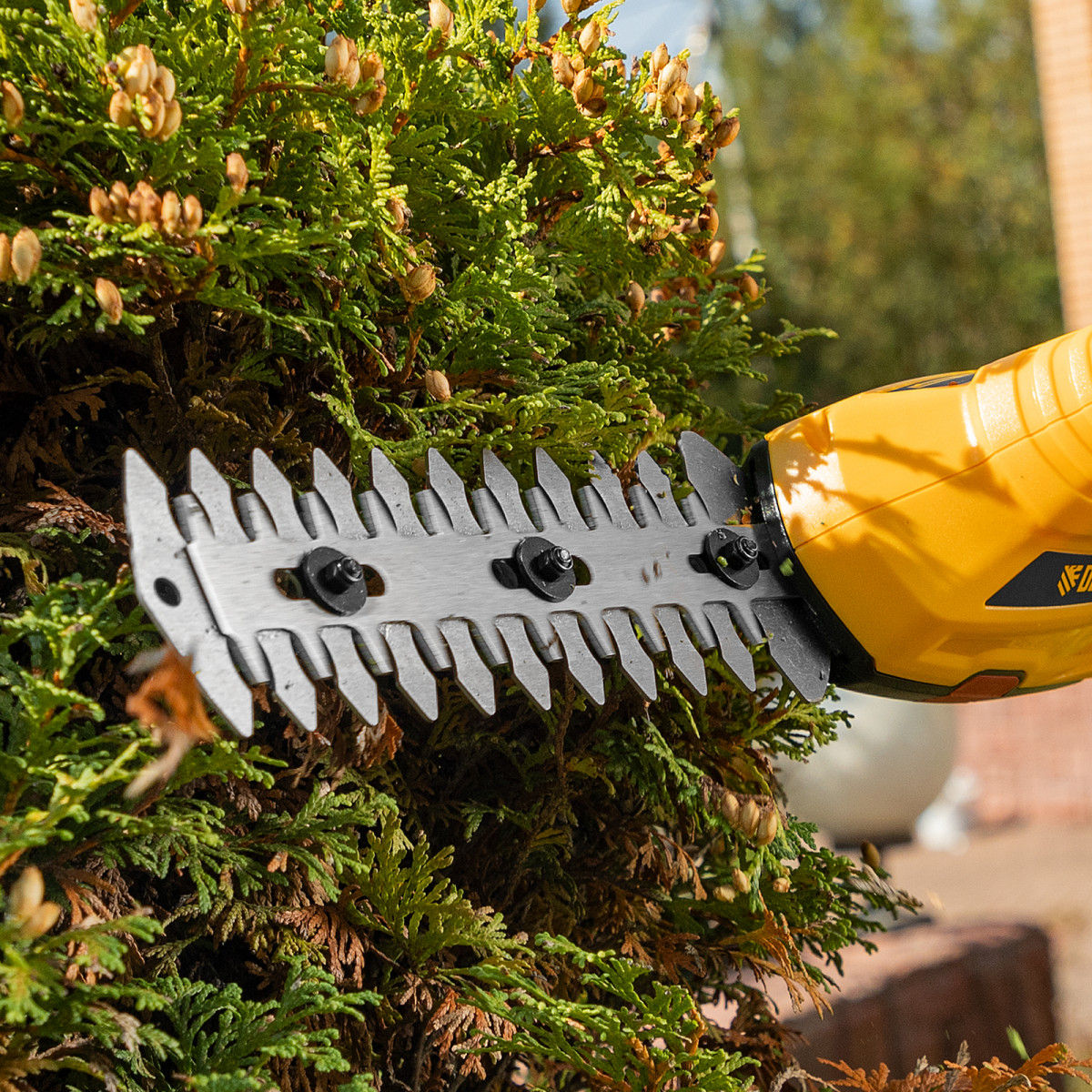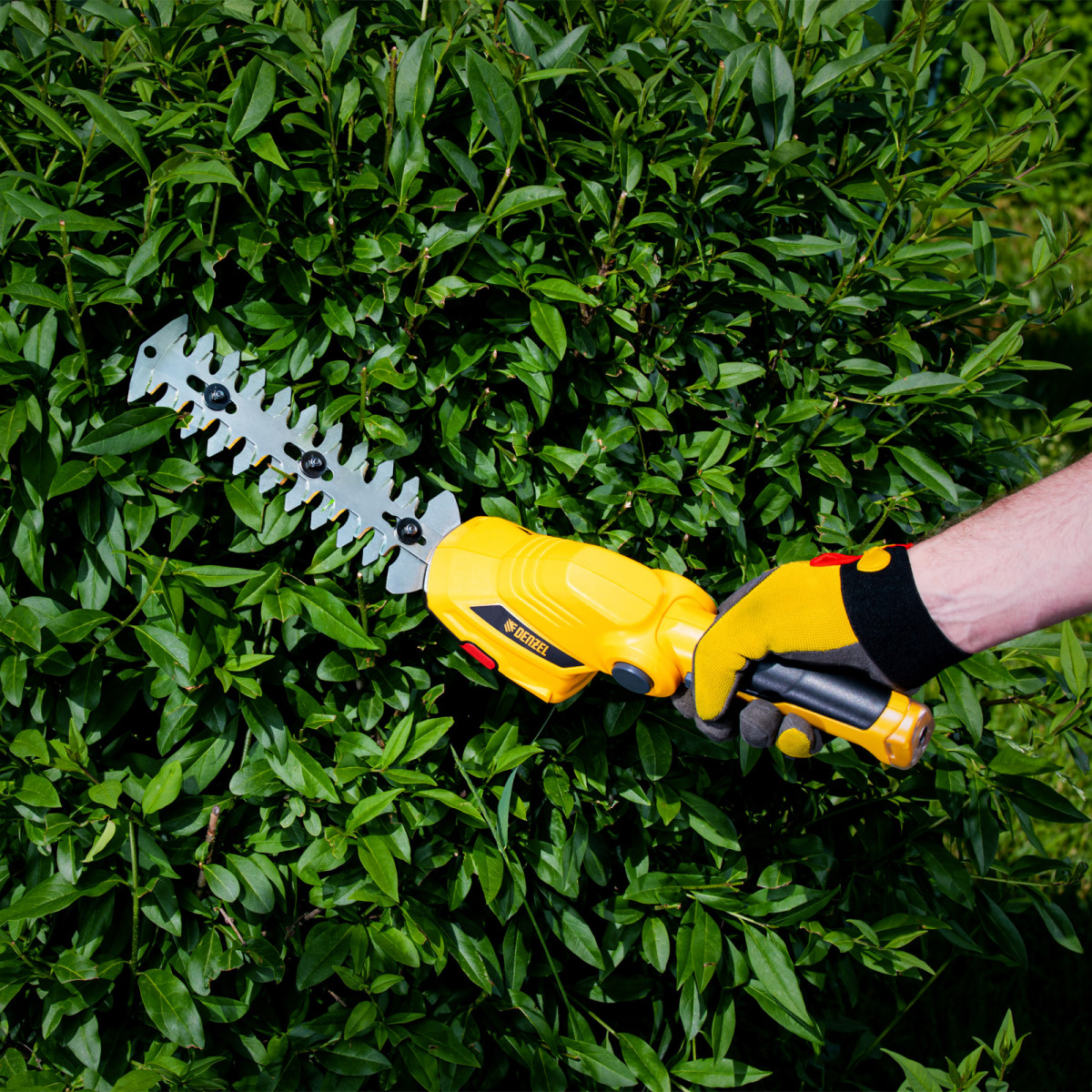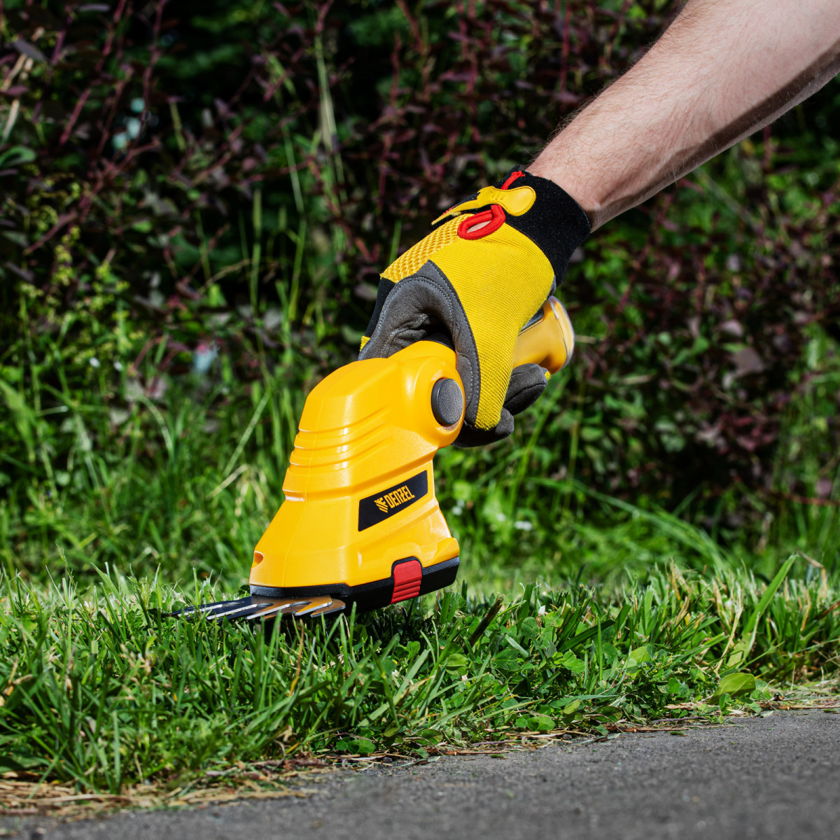 • Долговечность — медная обмотка двигателя устойчива к перегреву и обеспечивает стабильную работу ножниц-кустореза даже при высоких нагрузках.
