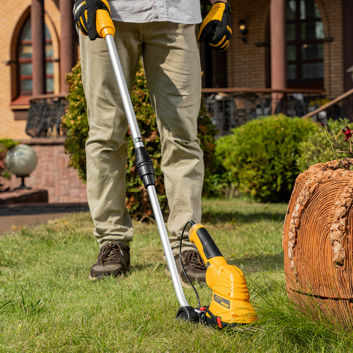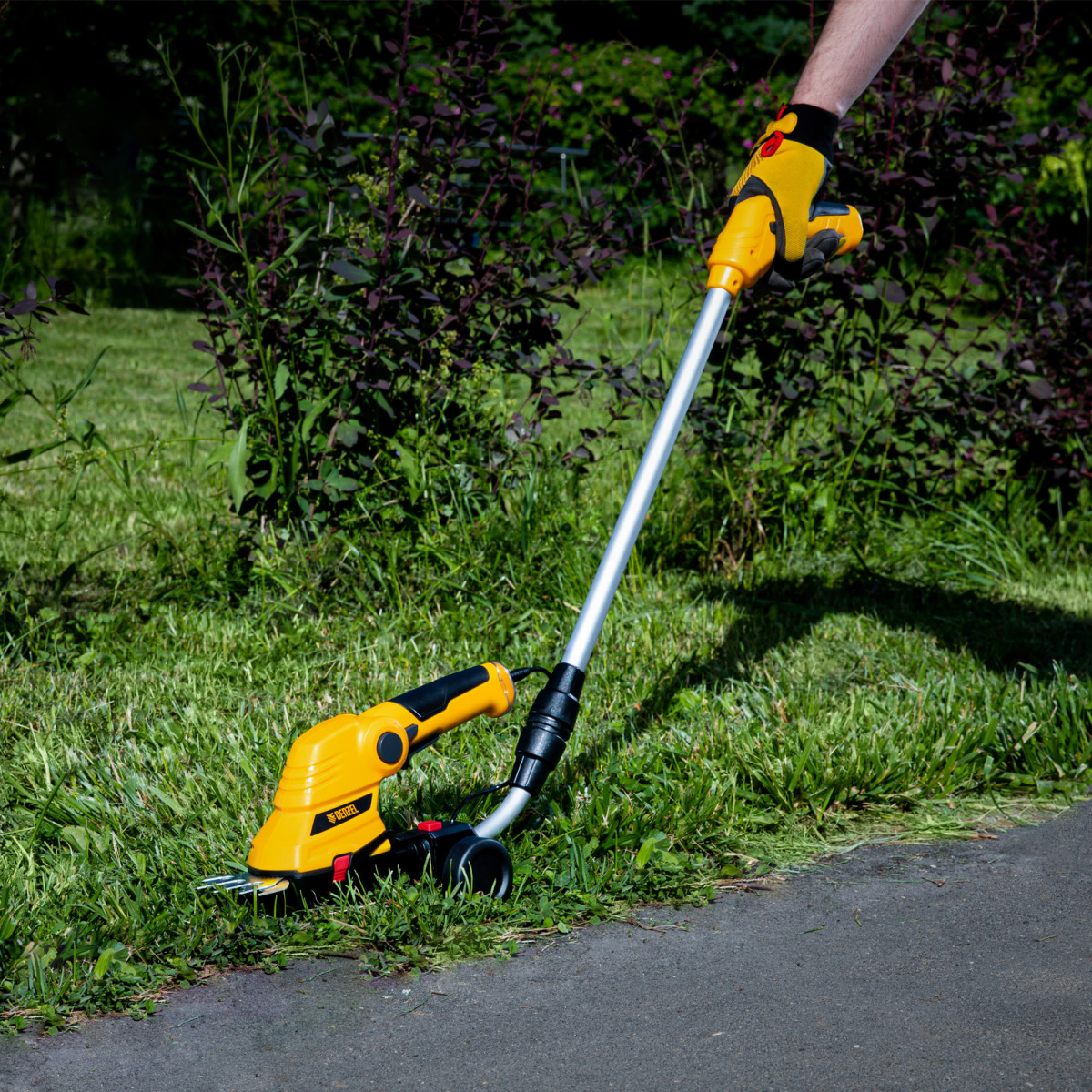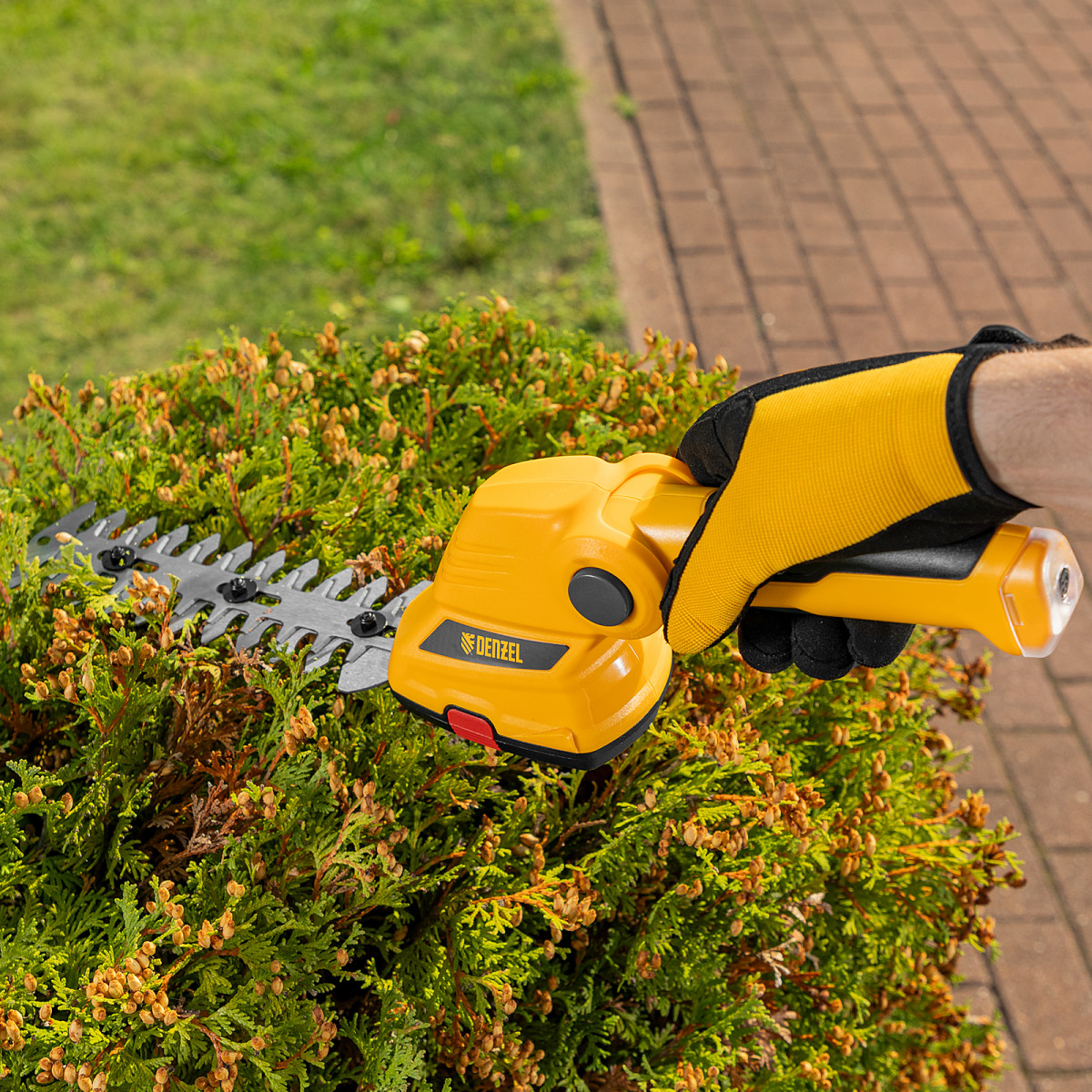 • Долговечность — медная обмотка двигателя устойчива к перегреву и обеспечивает стабильную работу ножниц-кустореза даже при высоких нагрузках.