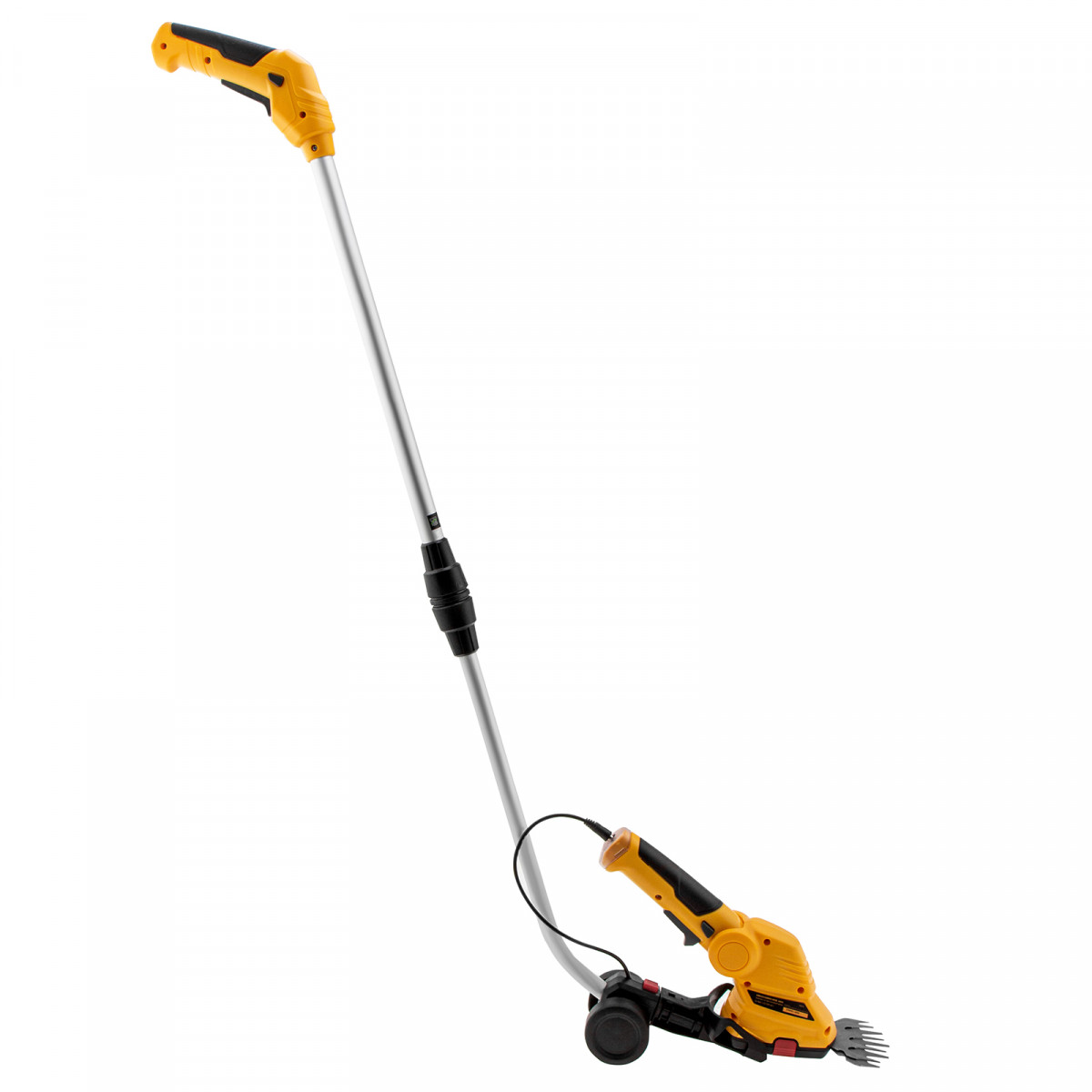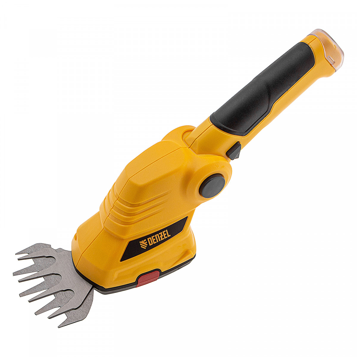 Аккумуляторные ножницы-кусторез Denzel G801E 968157 с телескопической штангой, с Li-Ion батареей емкостью 1,5 Ач и напряжением 7,2 В, используются для ухода за садовым участком. Поставляются с двумя насадками: для подрезания газонной травы и для обрезки кустов и тонких веток деревьев. Небольшой вес 1,1 кг и съемная штанга с колесным блоком обеспечивают комфортное использование ножниц-кустореза.