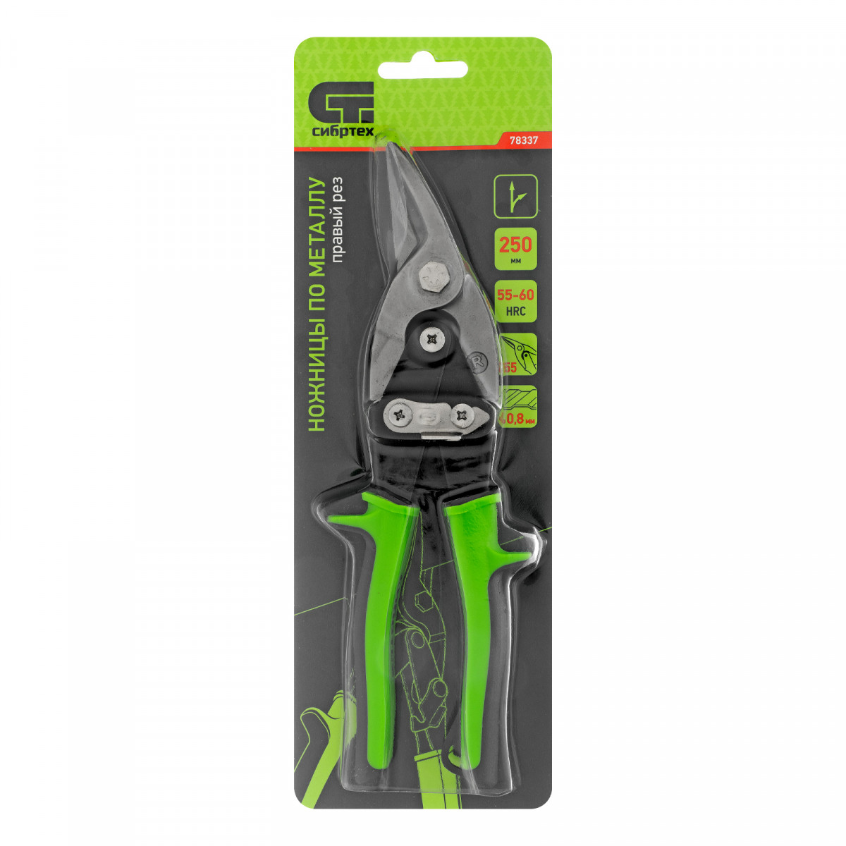 Ножницы Сибртех 78337 длиной 250 мм, из стали С55, с двухкомпонентными рукоятками, используются для правого реза профильного и листового металла. Предназначены для проведения ремонтных и монтажных работ с материалами толщиной до 0,8 мм.