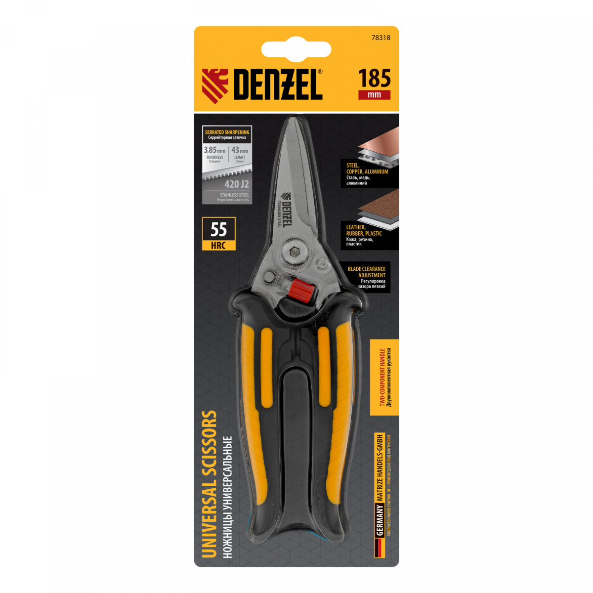 Ножницы универсальные, 185 мм, нержавеющая сталь Denzel