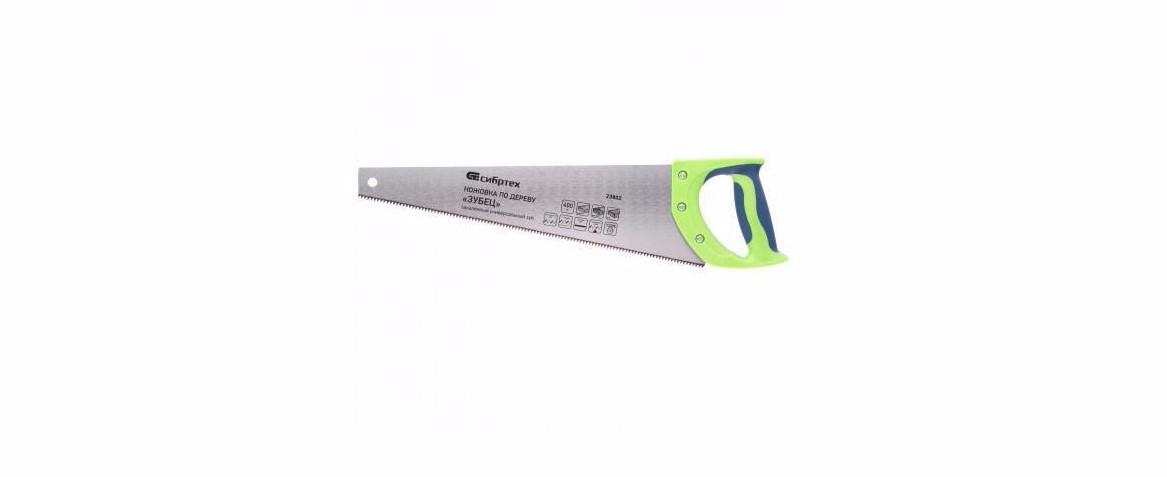 Полотно инструмента изготовлено из легированной стали и имеет зуб с двухгранней заточкой. Количество зубьев на дюйм – 7. Зубья ножовки закалены. Двухкомпонентная рукоятка изготовлена из ударопрочной пластмассы, крепится тремя винтами к полотну. Используется при продольном и поперечном пилении древесины.