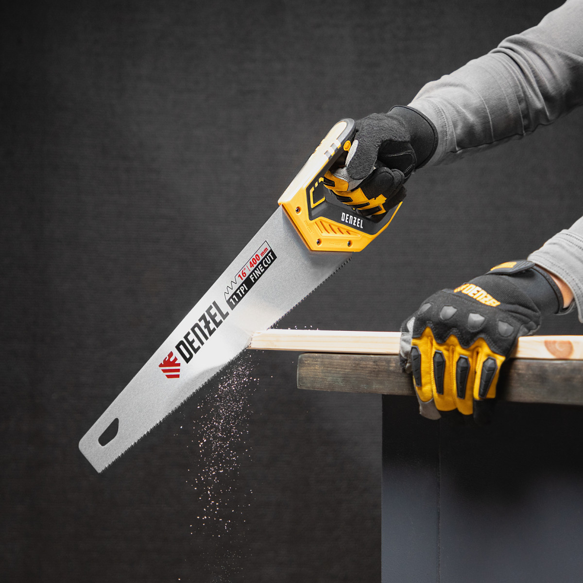 Ножовка по дереву, 400 мм, 11 TPI, зуб 3D, двухкомпонентная рукоятка Denzel