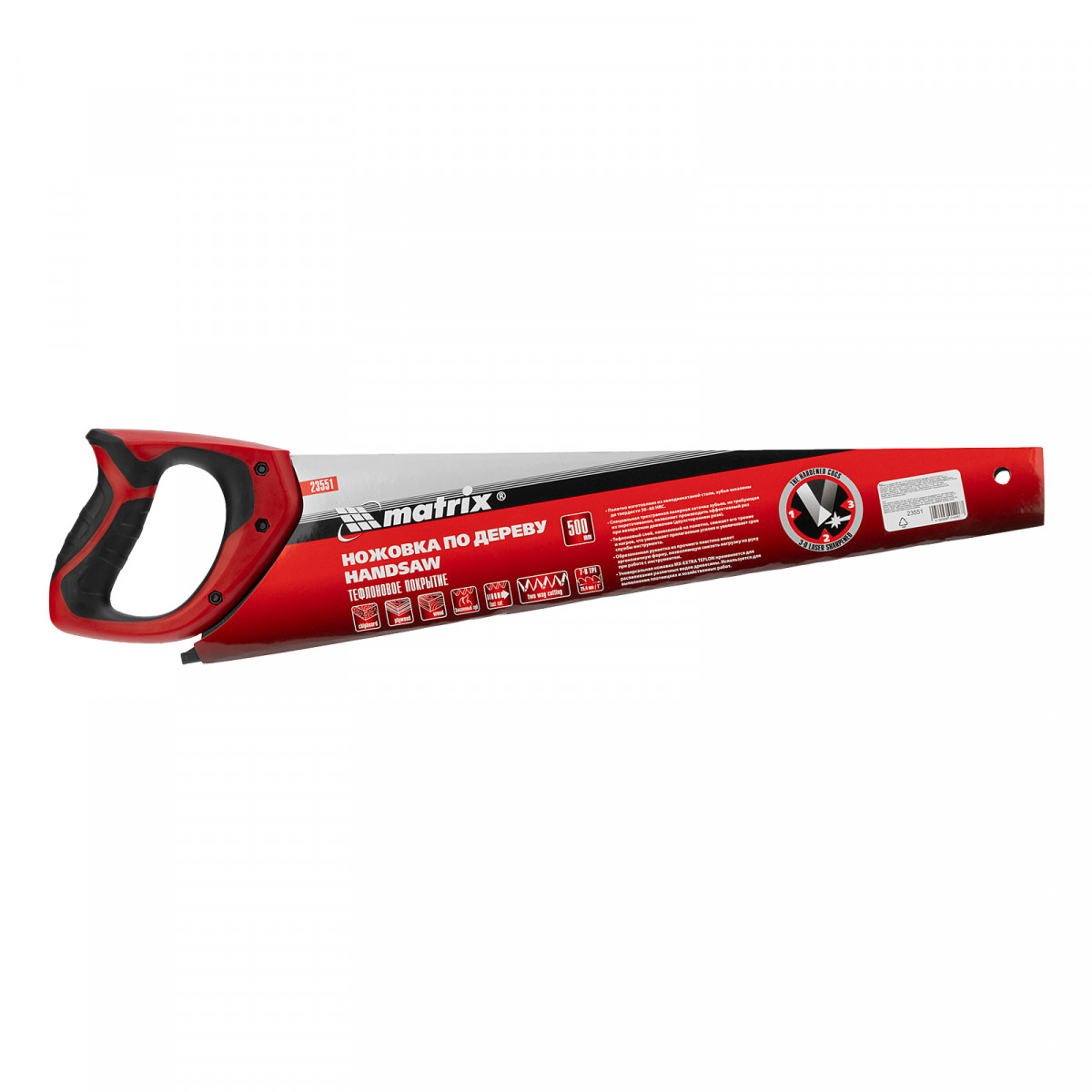Ножовка по дереву, 500 мм, 7-8 TPI, зуб-3D, каленый зуб, тефлоновое покрытие полотна, двухкомпонентная рукоятка Matrix