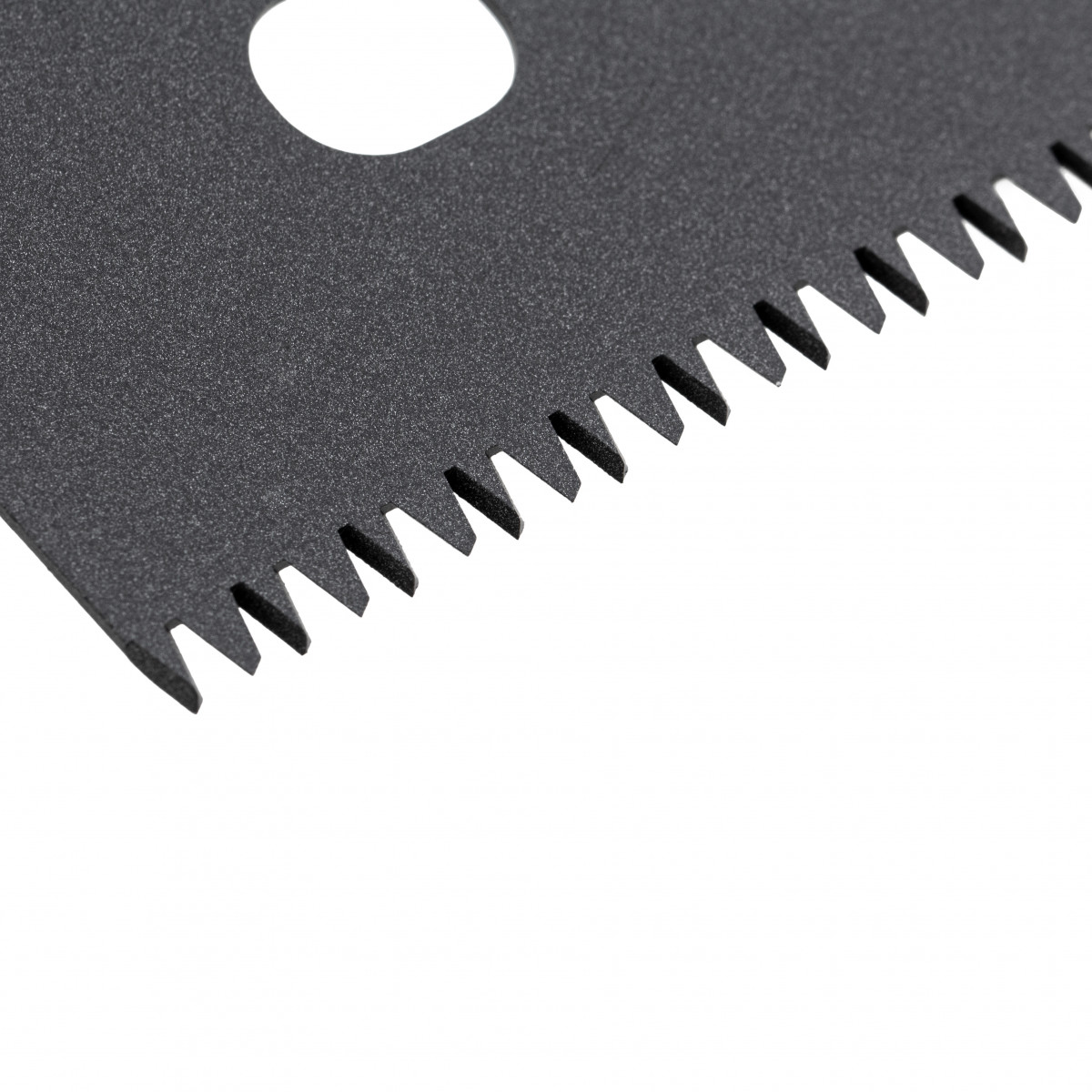 • Двухкомпонентная рукоятка выполнена из ударопрочного ABS-пластика, что повышает надежность ножовки.