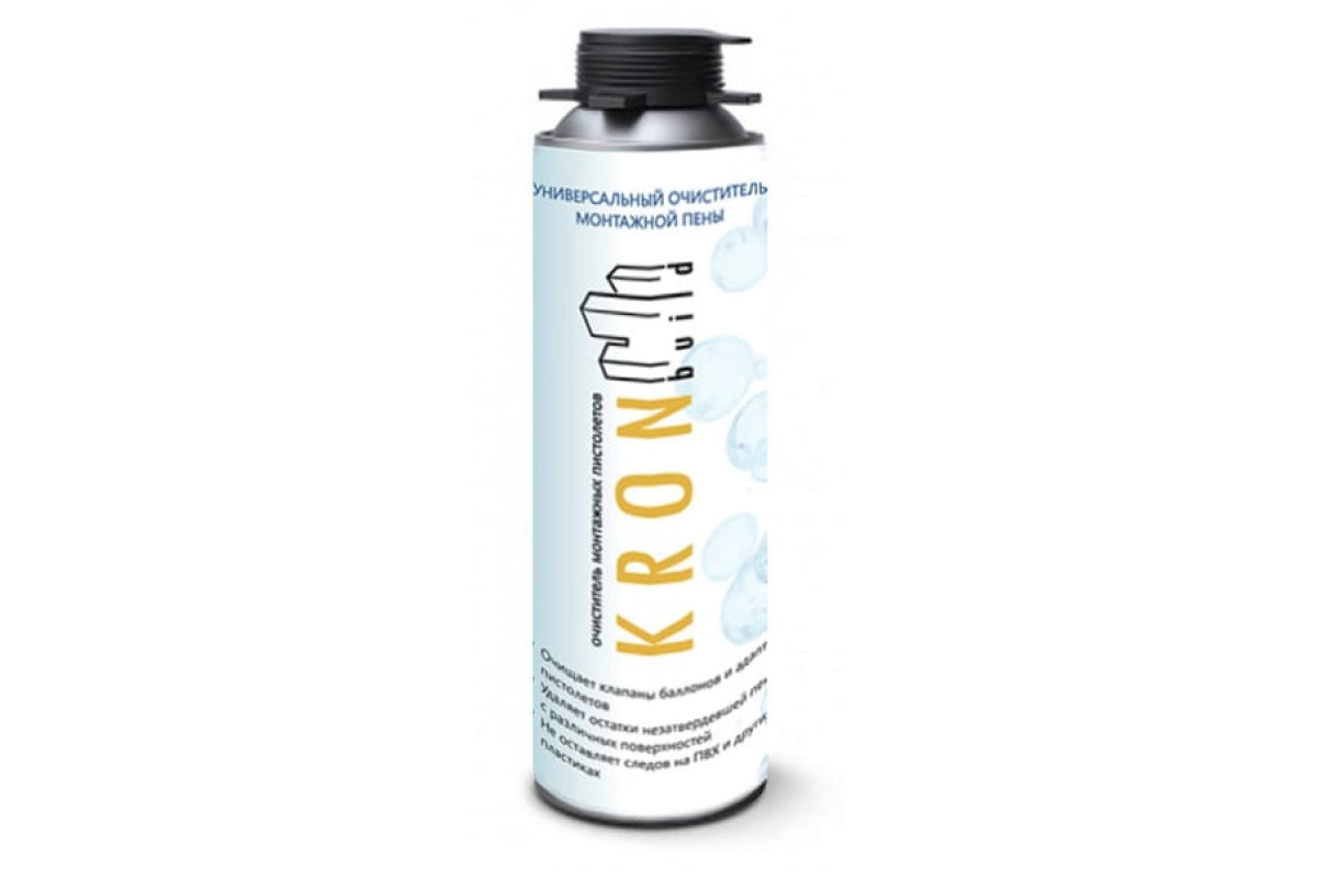 Очиститель монтажной пены Kronbuild 350g/300ml CF350 служит для устранения частиц не затвердевшей пены с инструмента. Вещество не имеет запаха и безопасно для поверхностей из ПВХ и пластика.Условия использования очистителя: температура окружающей среды от -10 до +40° С.