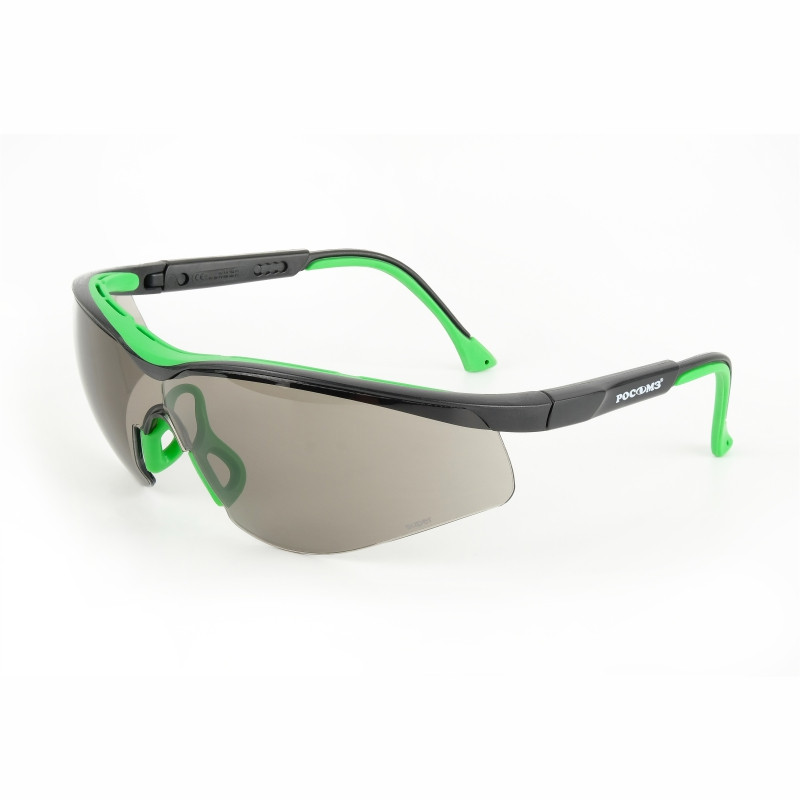СИЗ глаз для защиты от механических воздействий и неионизирующих излучений, капель и брызг жидкостей. Очки открытые с мягкой вставкой из ТЭП в области лба, двухкомпонентными регулируемыми по длине и углу наклона заушниками с мягкими вставками из ТЭП защищают от высокоскоростных летящих частиц с низкоэнергетическим ударом 0,84 Дж.