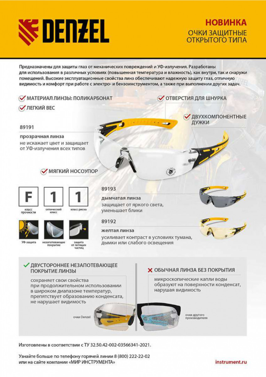 • Отличная видимость – на линзы нанесено двустороннее твердое незапотевающее покрытие в соответствии с ГОСТ 12.4.309.2-2016.