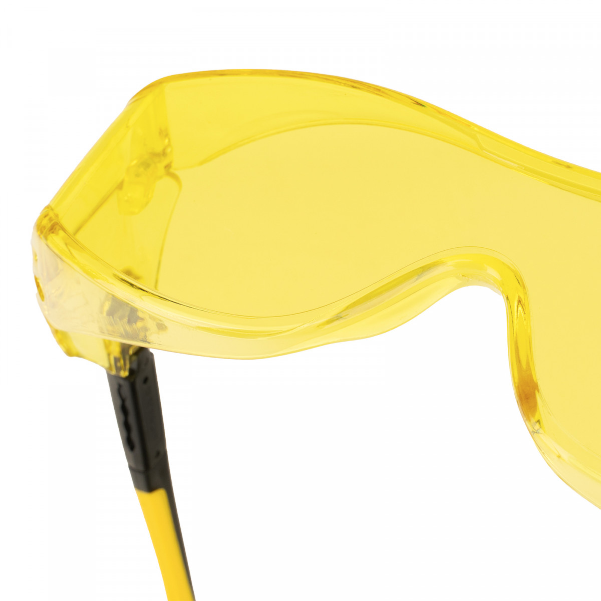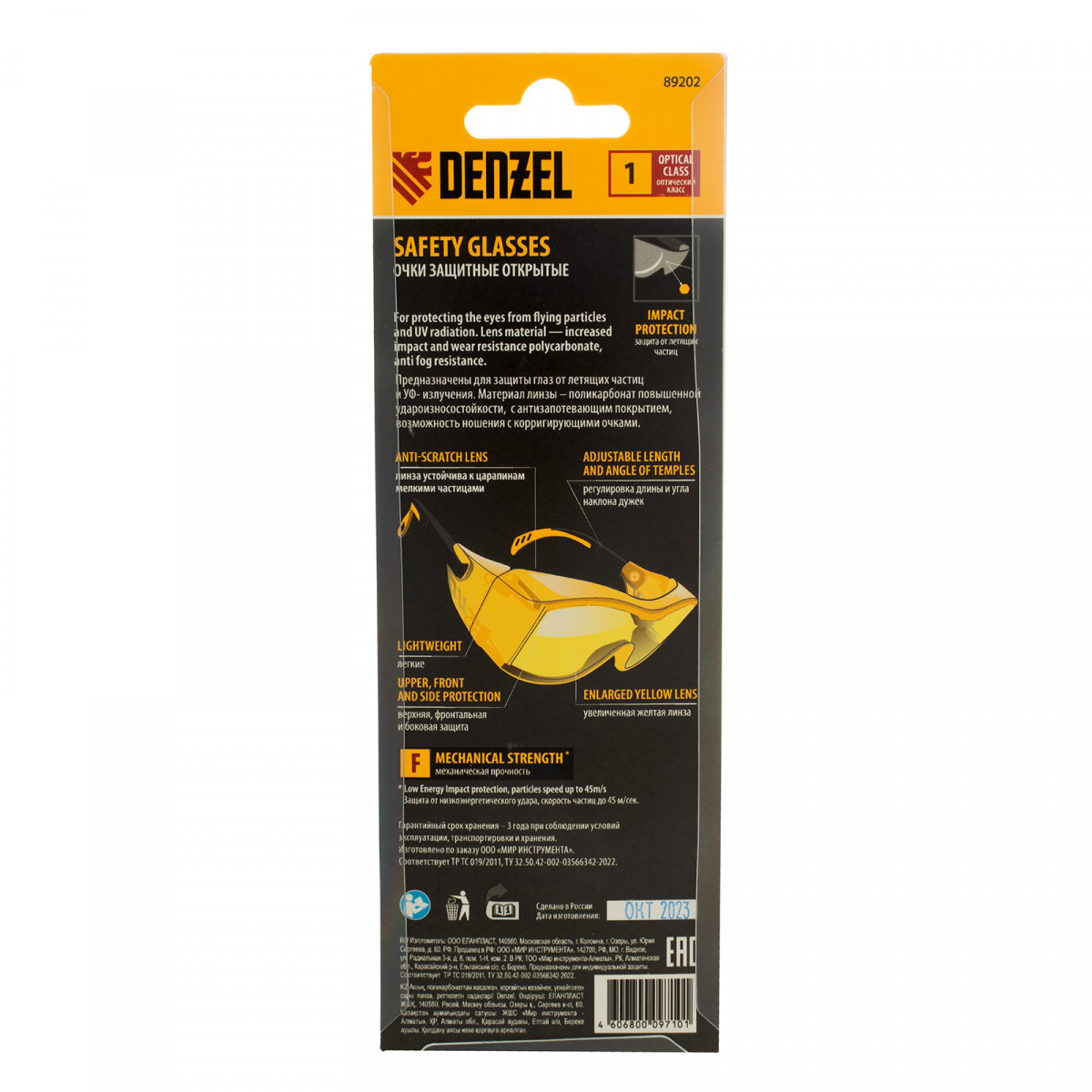 Очки защитные открытые, поликарбонатные, увеличенная желтая линза, регулируемые дужки Denzel