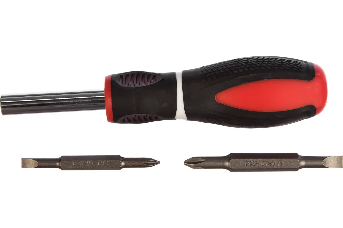 Комбинированная отвертка укомплектована стержнем и двухсторонними битами, что позволяет осуществлять монтаж/демонтаж крепежа со шлицами SL5,0 / PH1, SL6,0 / PH2. Инструмент рассчитан на профессиональное применение при проведении строительных, монтажных и ремонтных работ. Отвертка со стержнем 75 мм актуальна для работы с крепежом в углублениях.