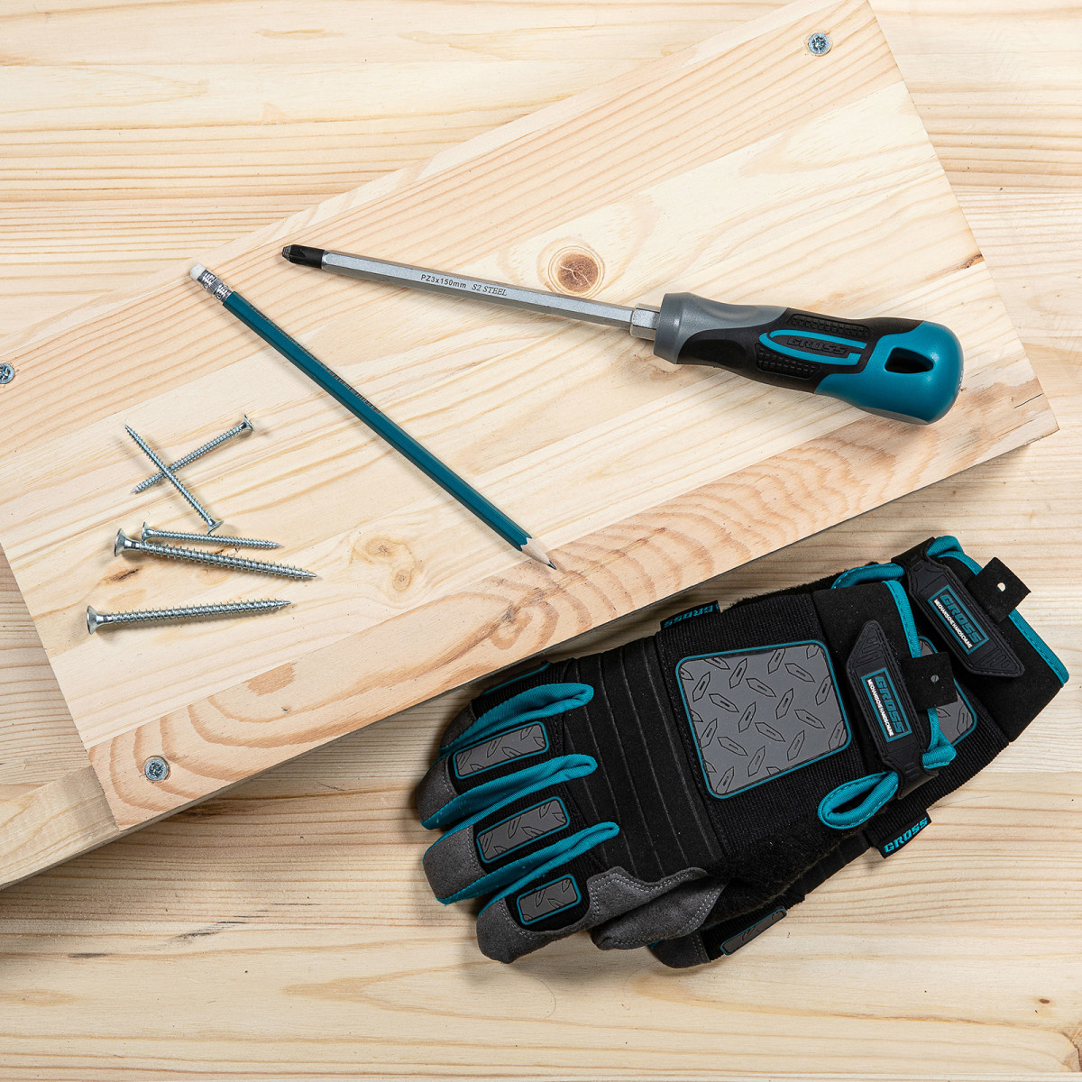 Отвертка Gross 12163, PZ3 x 150 мм, из стали S2, с трехкомпонентной рукояткой, пригодится для монтажа и демонтажа крепежных элементов типа Pozidriv. За счет крестового шлица с 4 дополнительными насечками крепеж не проскальзывает, что обеспечивает высокую точность работы. Стержень длиной 150 мм подходит для работы с крепежом на поверхностях и в углублениях. Отвертка выдерживает интенсивные нагрузки и рассчитана на профессиональное использование.