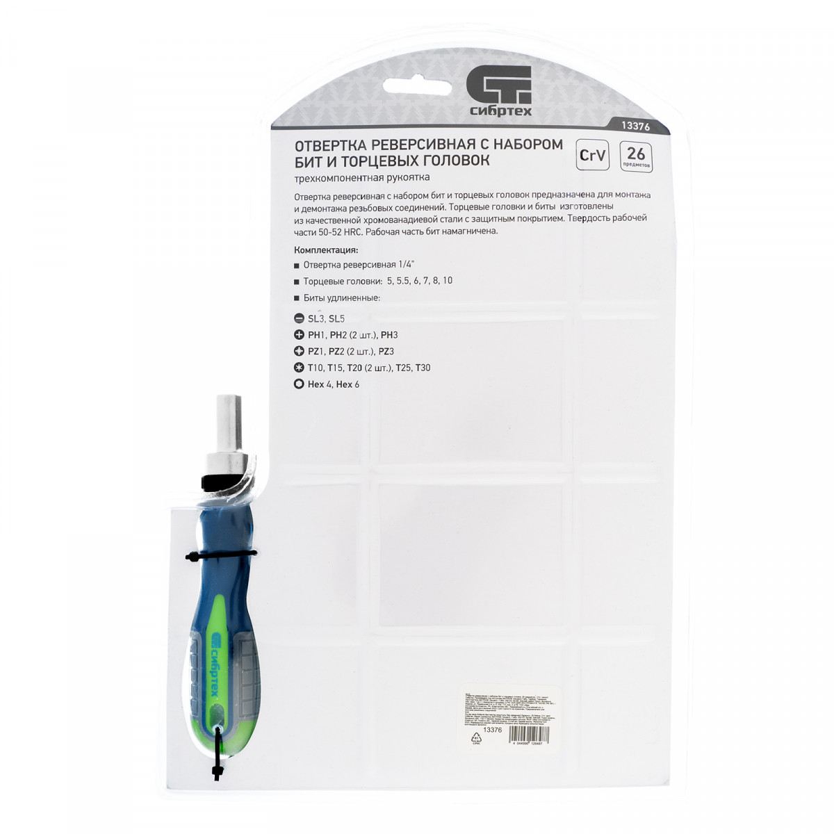 Реверсивная отвертка с набором бит и торцевых головок Сибртех 13376, 25 предметов из стали CrV в чехле, — это надежный инструмент для решения бытовых задач. С помощью сменных бит можно производить монтаж/демонтаж резьбовых соединений со шлицами SL, PH, PZ, TORX, HEX. А благодаря их удлиненной конструкции обеспечивается доступ к труднодоступным местам. Торцевые головки позволяют работать с болтами, гайками и другим крепежом.