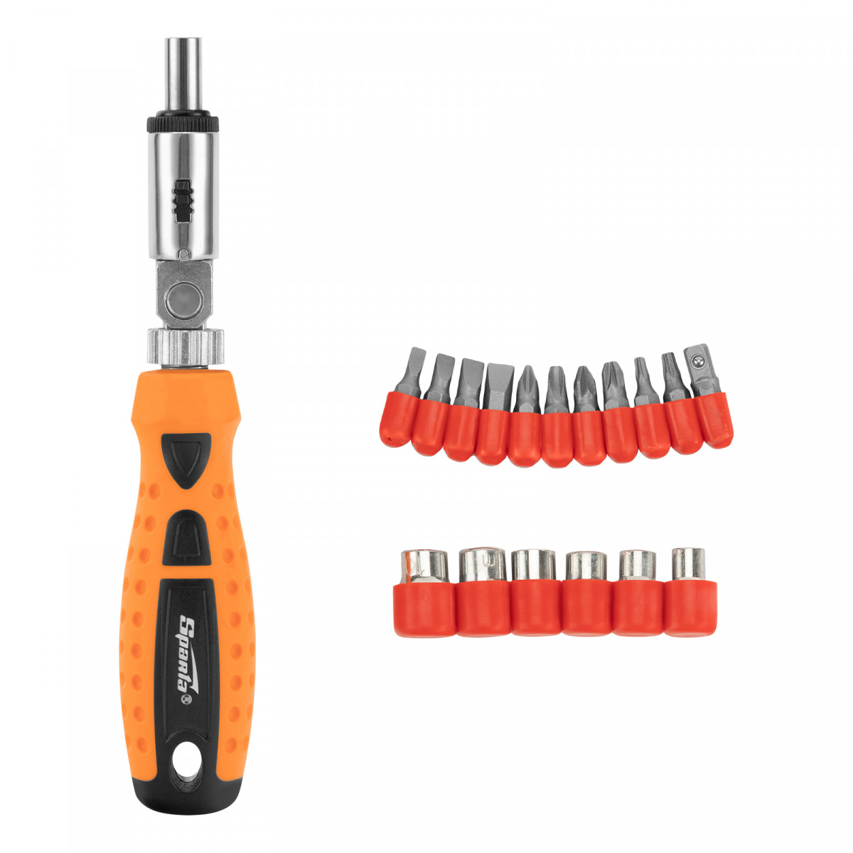 Отвертка реверсивная с шарниром, биты, торцевые головки, 18 шт, Sparta