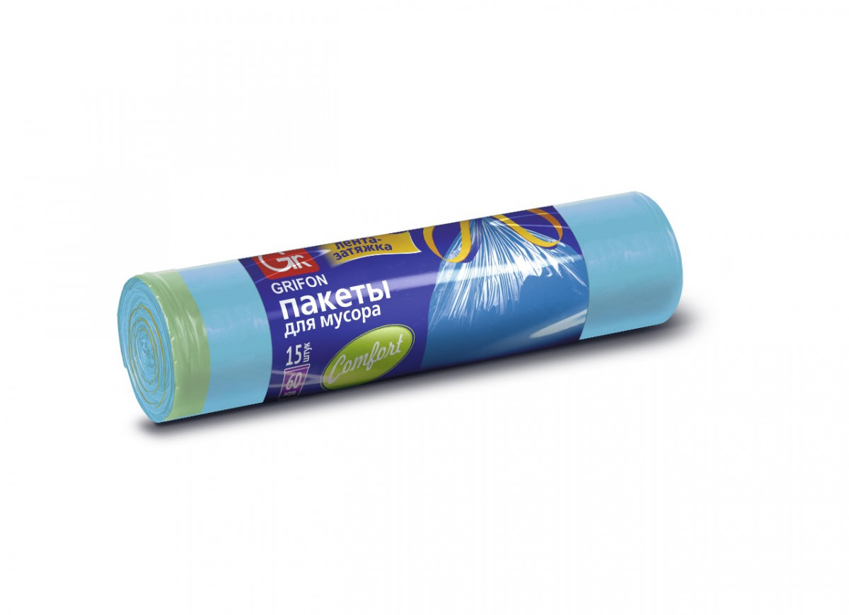 Пакеты для мусора 60 л GRIFON с завязками 15 шт в рулоне
