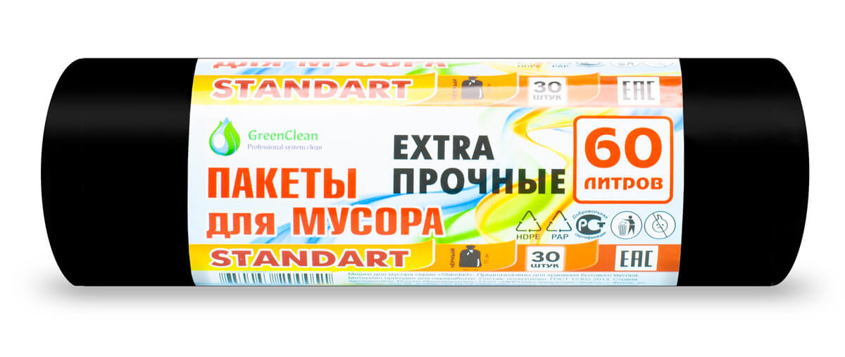 Пакеты для мусора 60 л MIRPACK STANDAR 7 мкм 60х70 см