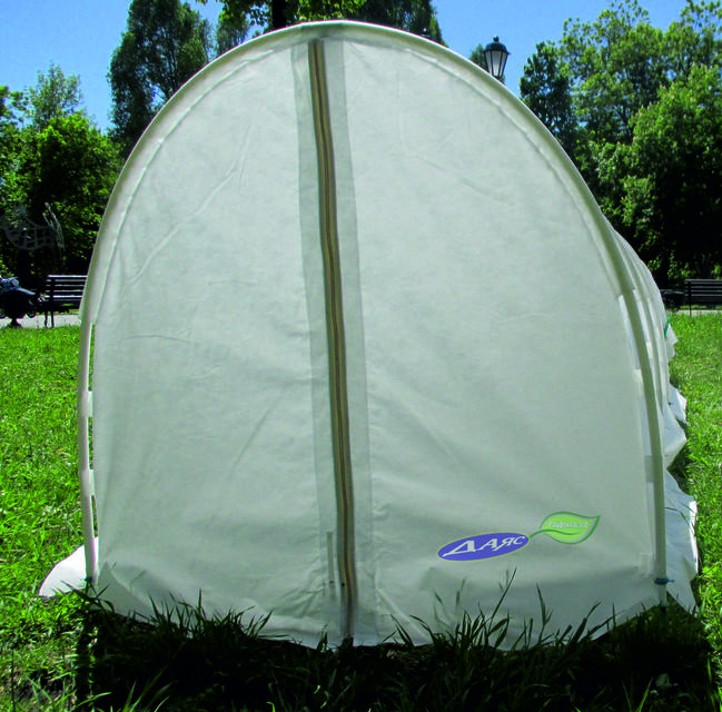 Парники с конструкцией, в которой дуги каркаса вставляются в прошитые отверстия в укрывном материале и растягиваются гармошкой. Торцы на молниях. 1,15*1,15м белая ПП дуга, Райфенхаузер SSS-60,