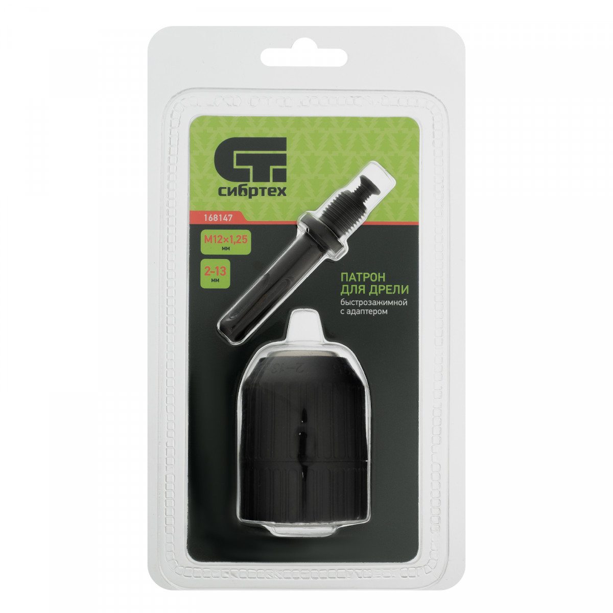 Патрон для дрели БЗП 2-13 мм, М12 х 1.25, адаптер SDS Plus Сибртех