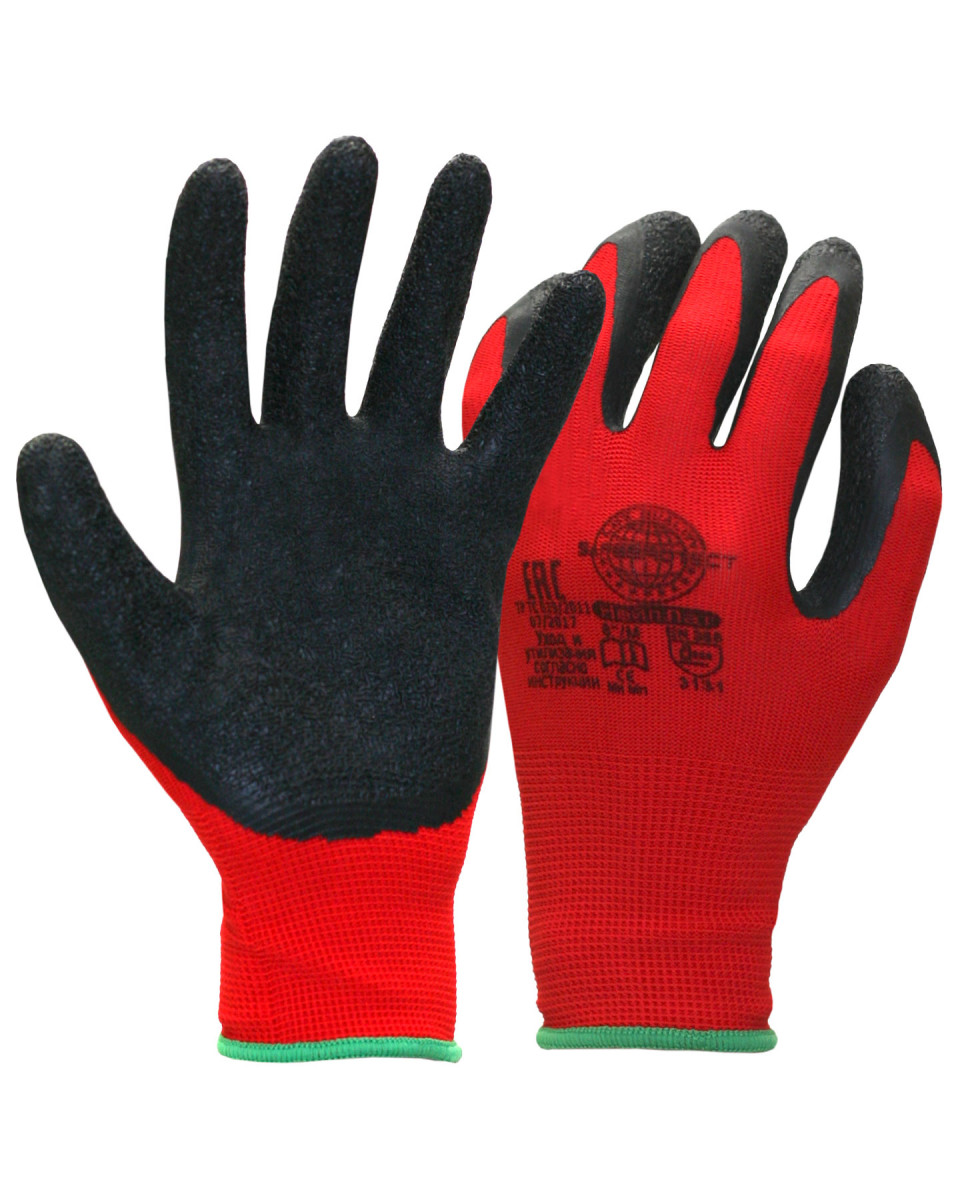 Перчатки нейлоновые с рифленым латексным покр. красно-черный