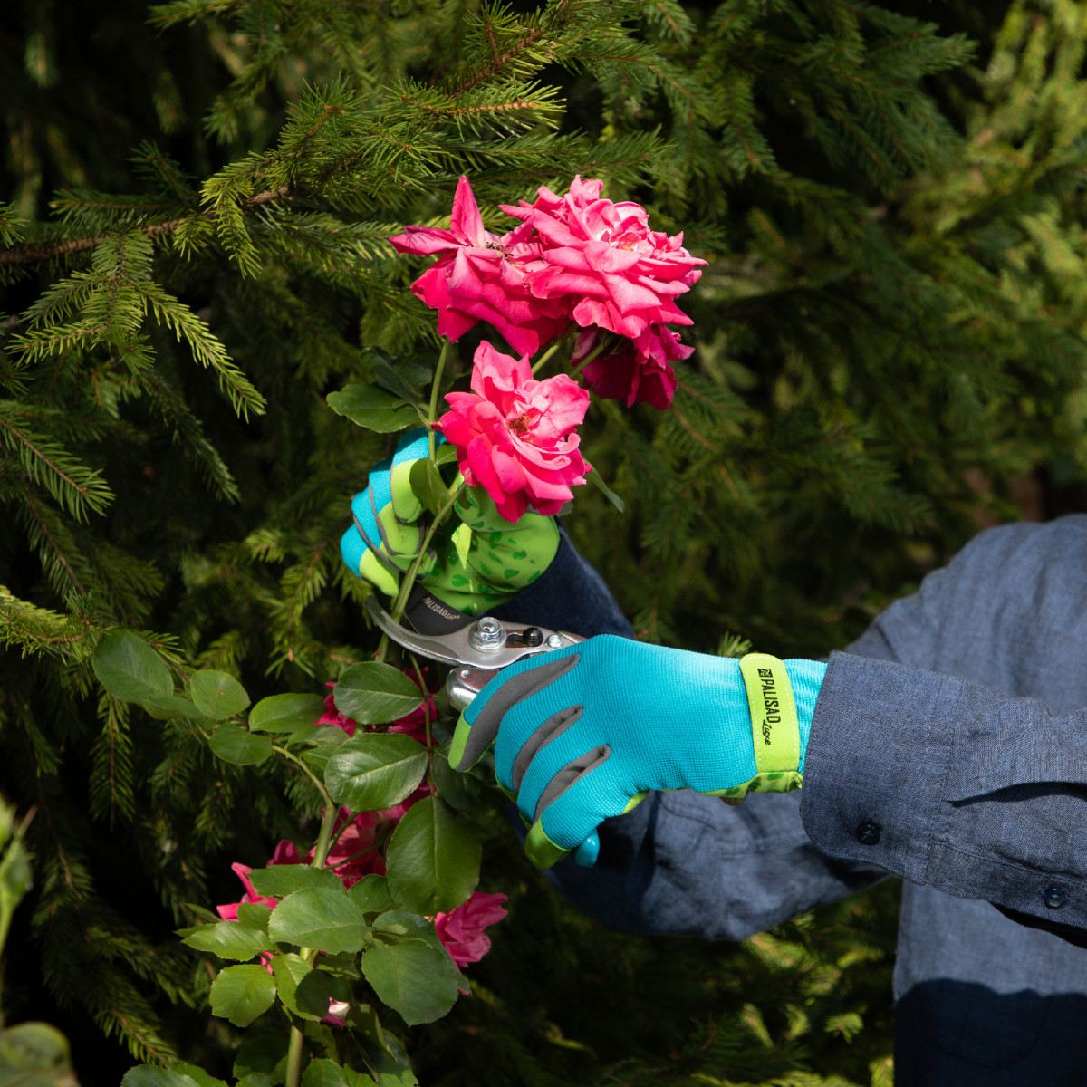 - Безопасная работа с колючими растениями — ладонная часть и большой палец дополнительно усилены, что позволяет производить обрезку, обработку и посадку роз, шиповника и т.д. без риска травмирования.
